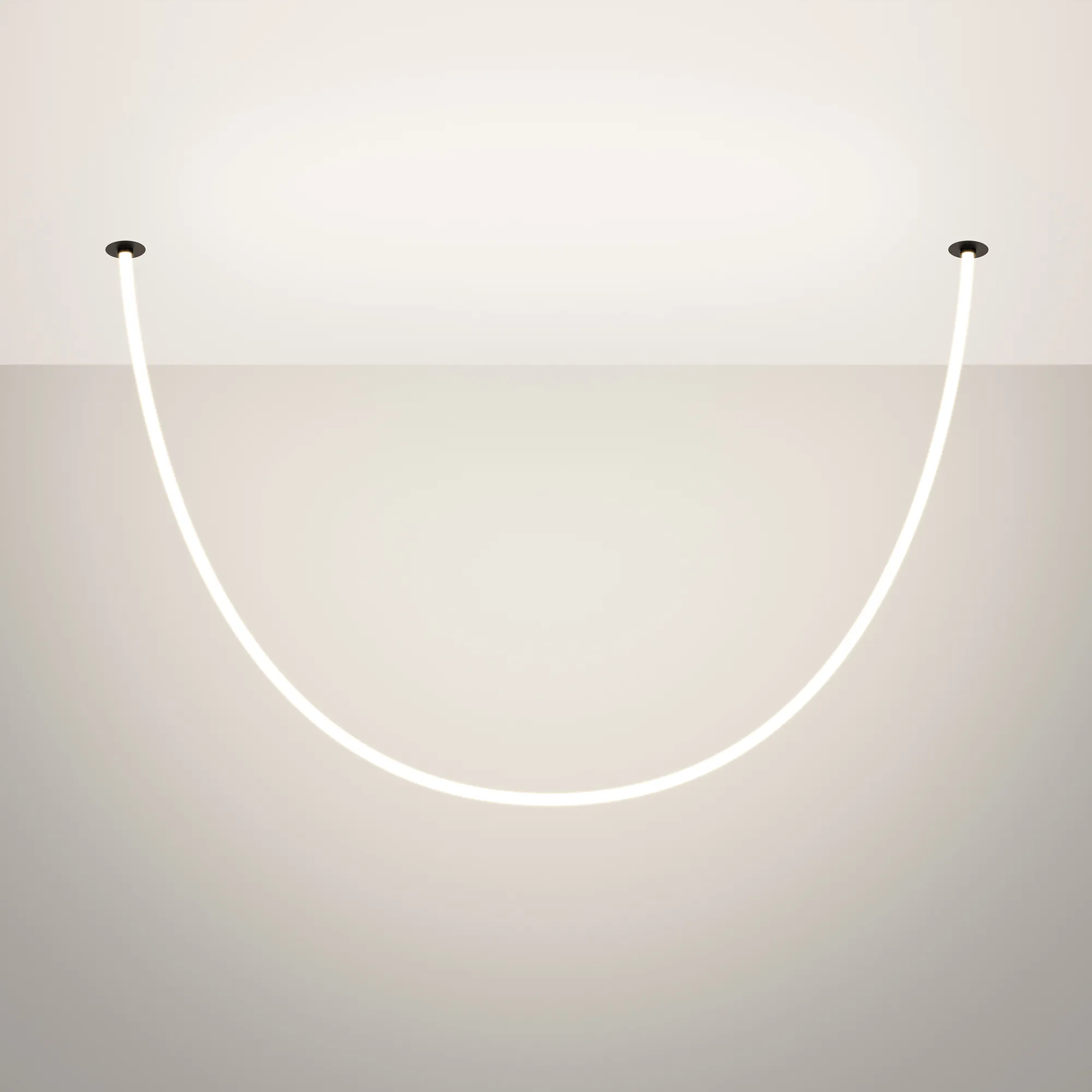 Подвесной светильник. Мощность 36 Вт, св. поток 2300 лм, 63 лм/Вт, дневной 4000 K, CRI>90, угол 360°, напряжение питания 230 В. Черный круглый корпус из стали, силиконовая герметичная лента, степень защиты IP20. Размер: диаметр утапливаемой части чаши 64 мм, высота чаши с утапливаемой частью без вывода под неон 40 мм, общая высота чаши 57 мм, диаметр чаши с фланцем 100 мм, диаметр силиконовой герметичной ленты 18 мм, длина силиконовой герметичной ленты 2500 мм. Монтаж встраиваемый, глубина установки 55 мм, диаметр установочного отверстия 70 мм. Блок питания 24 В, 1880 мА, пульсация <5%.