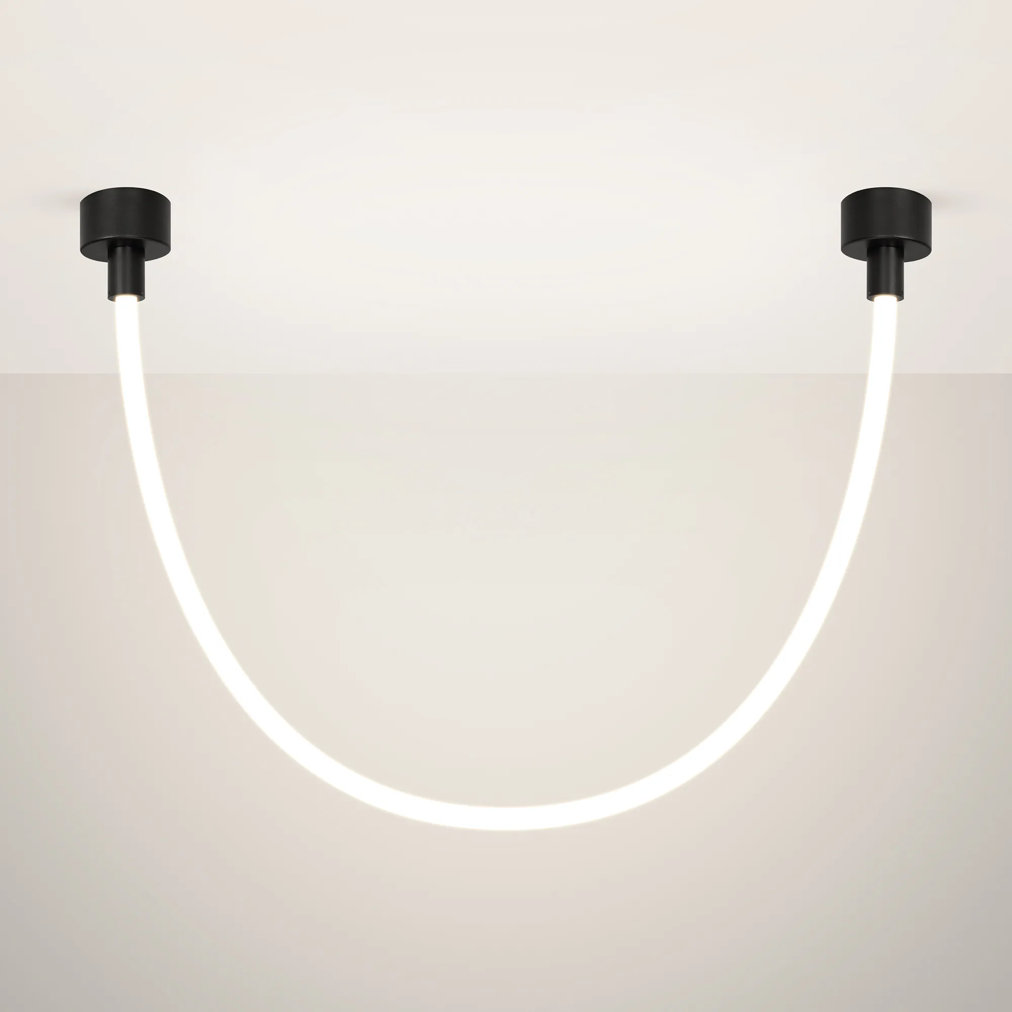 Подвесной светильник. Мощность 18 Вт, св. поток 1160 лм, 64 лм/Вт, дневной 4000 K, CRI>90, угол 360°, напряжение питания 230 В. Черный круглый корпус из стали, силиконовая герметичная лента, степень защиты IP20. Размер: общая высота чаши 85 мм, высота чаши без вывода под неон 50 мм, диаметр вывода под неон 35 мм, диаметр чаши 130 мм, диаметр силиконовой герметичной ленты 18 мм, длина силиконовой герметичной ленты 1200 мм. Монтаж накладной. Блок питания 24 В, 750 мА, пульсация <5%.
