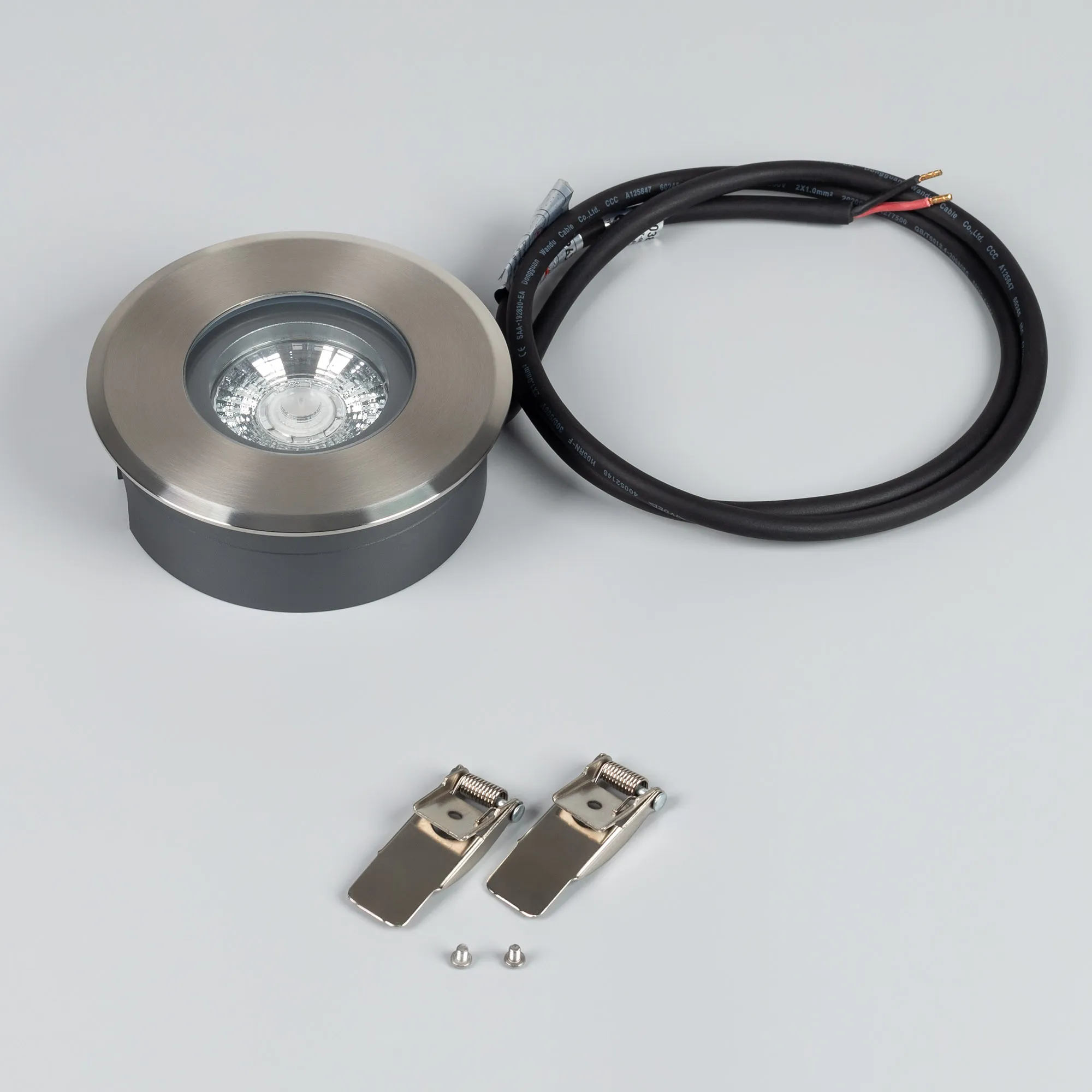 Встраиваемый светодиодный светильник для грунта и пола. Мощность 6Вт, угол освещения 35°, световой поток 400лм, цвет ТЕПЛЫЙ 3000К, CRI(Ra)>80. Круглый влагозащищенный корпус IP67, внешняя рамка из нержавеющей стали AISI 316. Экран закалённое стекло. Питание 24V, 6Вт. Размер Ø110x38мм. Установка в отверстие Ø98x35мм. ВНИМАНИЕ! Светильник не поддерживает регулирование светового потока ШИМ. Комплект установки в грунт/пол в комплекте,