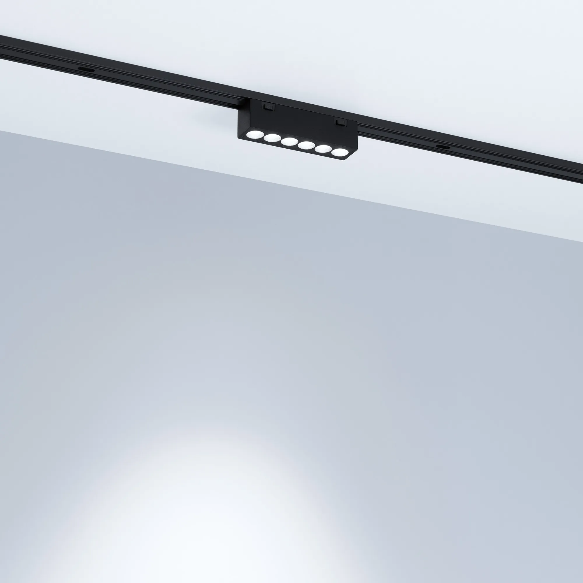 Светильник для магнитных треков MAG-VIBE с управлением TUYA Zigbee и изменяемой цветовой температурой. Мощность 6 Вт, св. поток 475-500 лм, 79-83 лм/Вт, изменяемая цветовая температура 2700-5700 K, CRI>90, угол 24°, напряжение питания 48 В. Черный прямоугольный корпус из алюминия, экран поликарбонат, степень защиты IP20. Размер: длина 101 мм, ширина 25 мм, высота 29 мм. Монтаж на трек MAG-VIBE. Пульсация <1%.