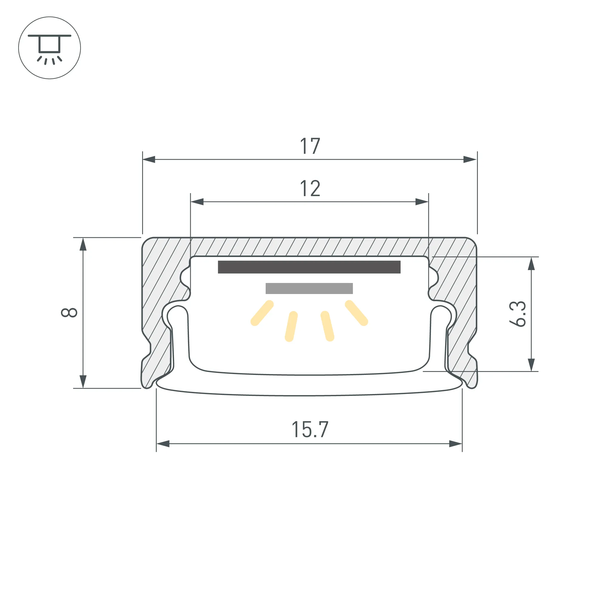 Алюминиевый анодированный накладной профиль для светодиодных лент и линеек. Габаритные размеры (L×W×H): 3000x17x8 мм. Ширина площадки для ленты 12 мм. Экраны, заглушки и другие аксессуары приобретаются отдельно. Цена за 1 метр.