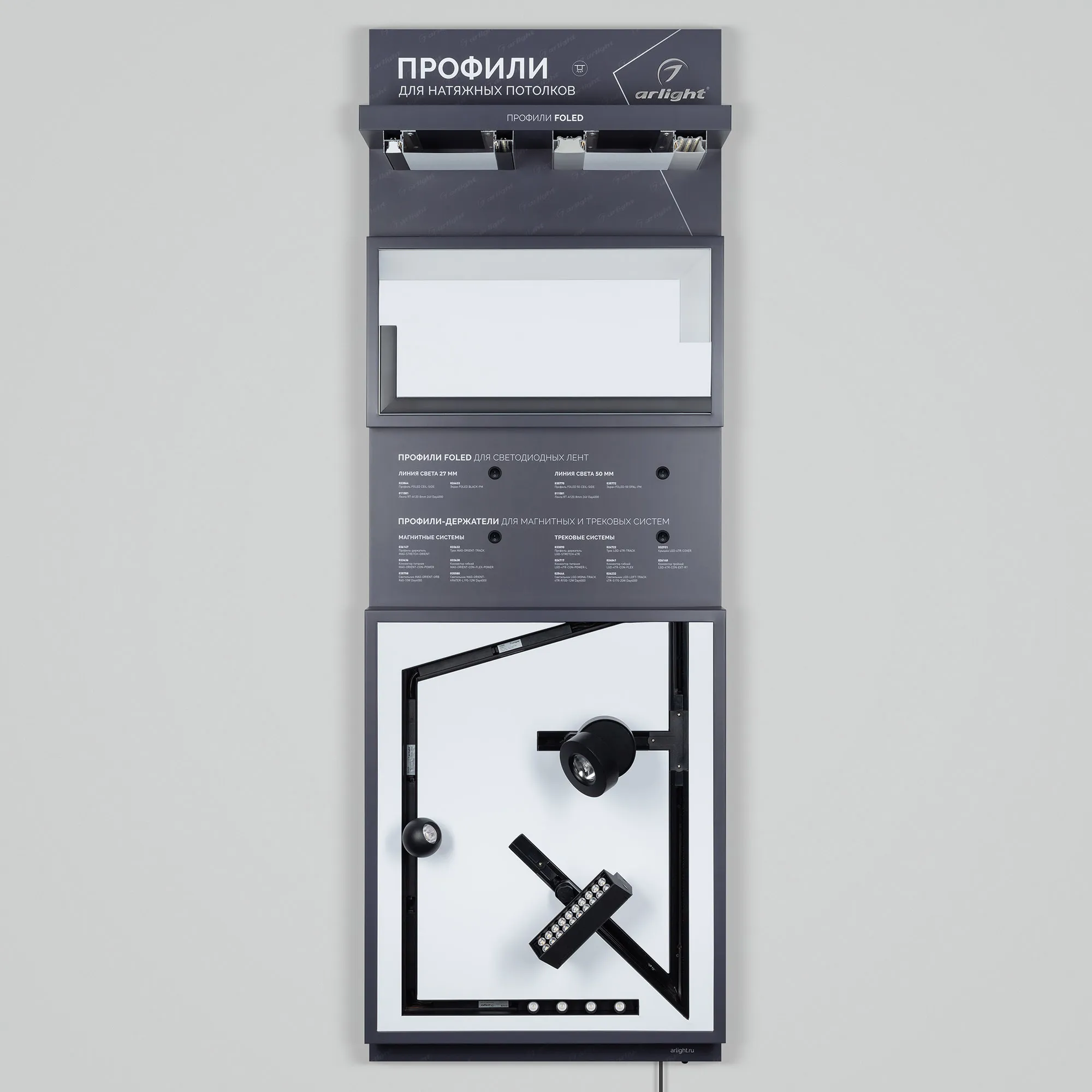 На стенде представлен ассортимент профилей Arlight для натяжных потолков: