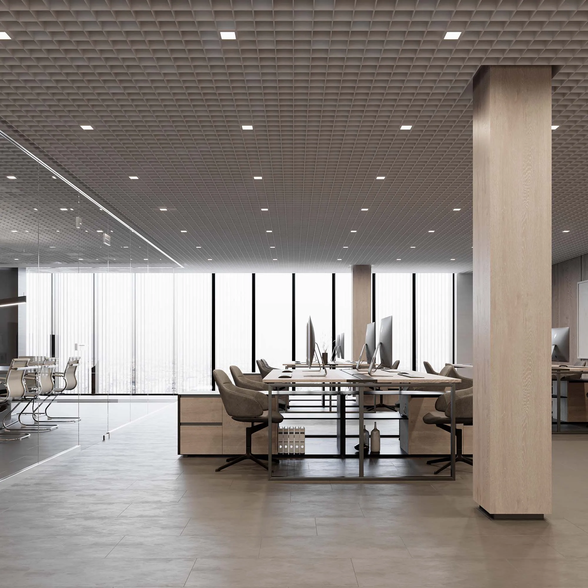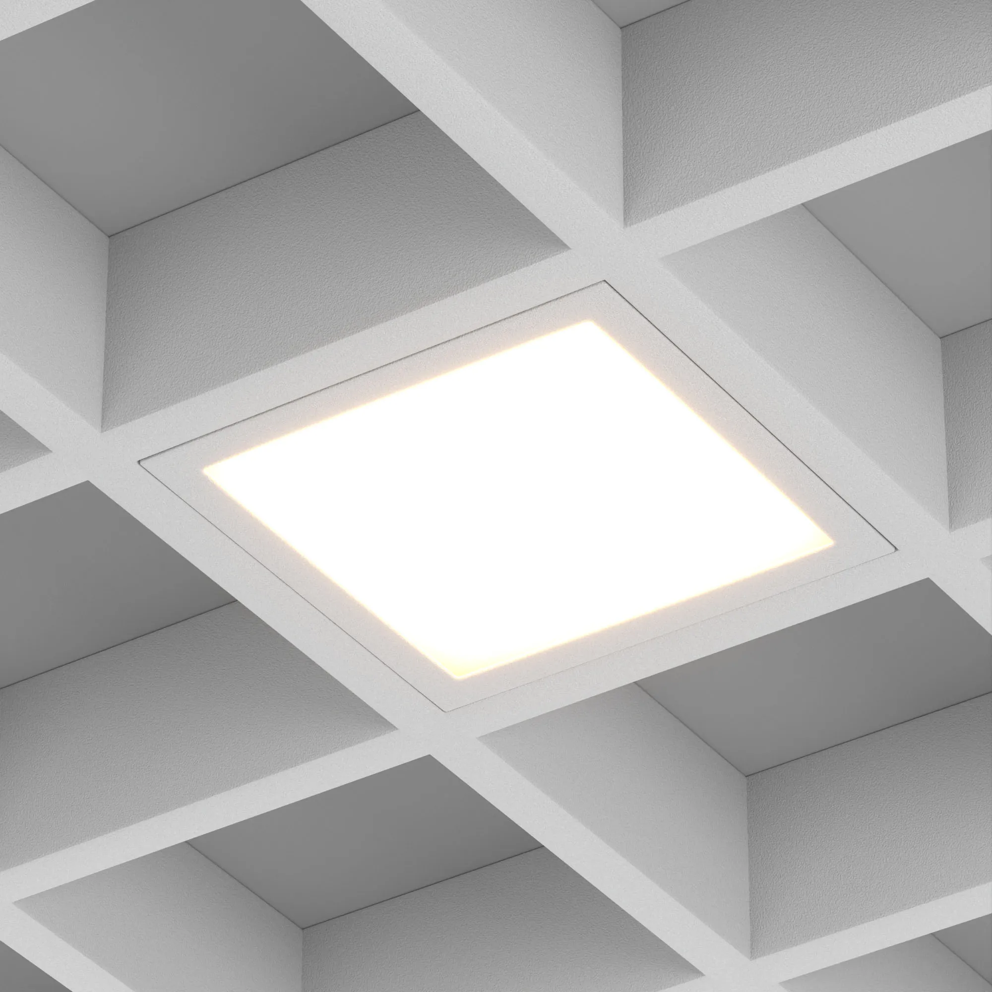 Встраиваемый светильник даунлайт для установки в потолки Грильято с размером ячейки 100х100 мм и высотой направляющих 30, 40 или 50 мм. Мощность 12 Вт, св. поток 1290 лм, 107 лм/Вт, дневной 4000 K, CRI>90, угол 90°, напряжение питания 230 В. Белый квадратный корпус из алюминия, степень защиты IP40. Размер: длина 90 мм, ширина 90 мм, высота 40 мм. Монтаж встраиваемый, установочное отверстие: длина 90 мм, ширина 90 мм. Драйвер 24-42 В, 300 мА, пульсация <2%.