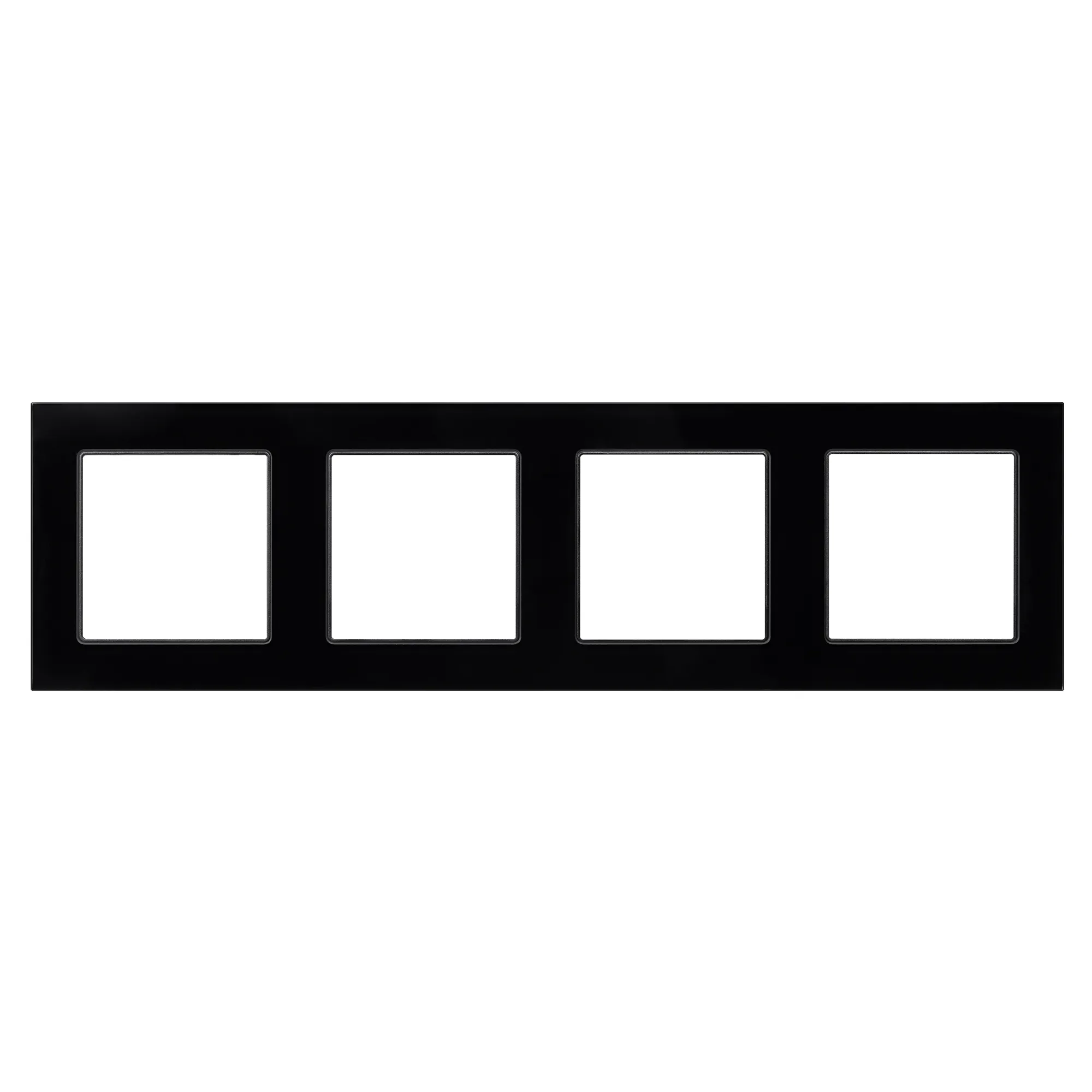 Рамка стеклянная на 4 поста, под встраиваемый механизм (квадрат). Цвет - черный. Ориентации монтажа - горизонтальная.