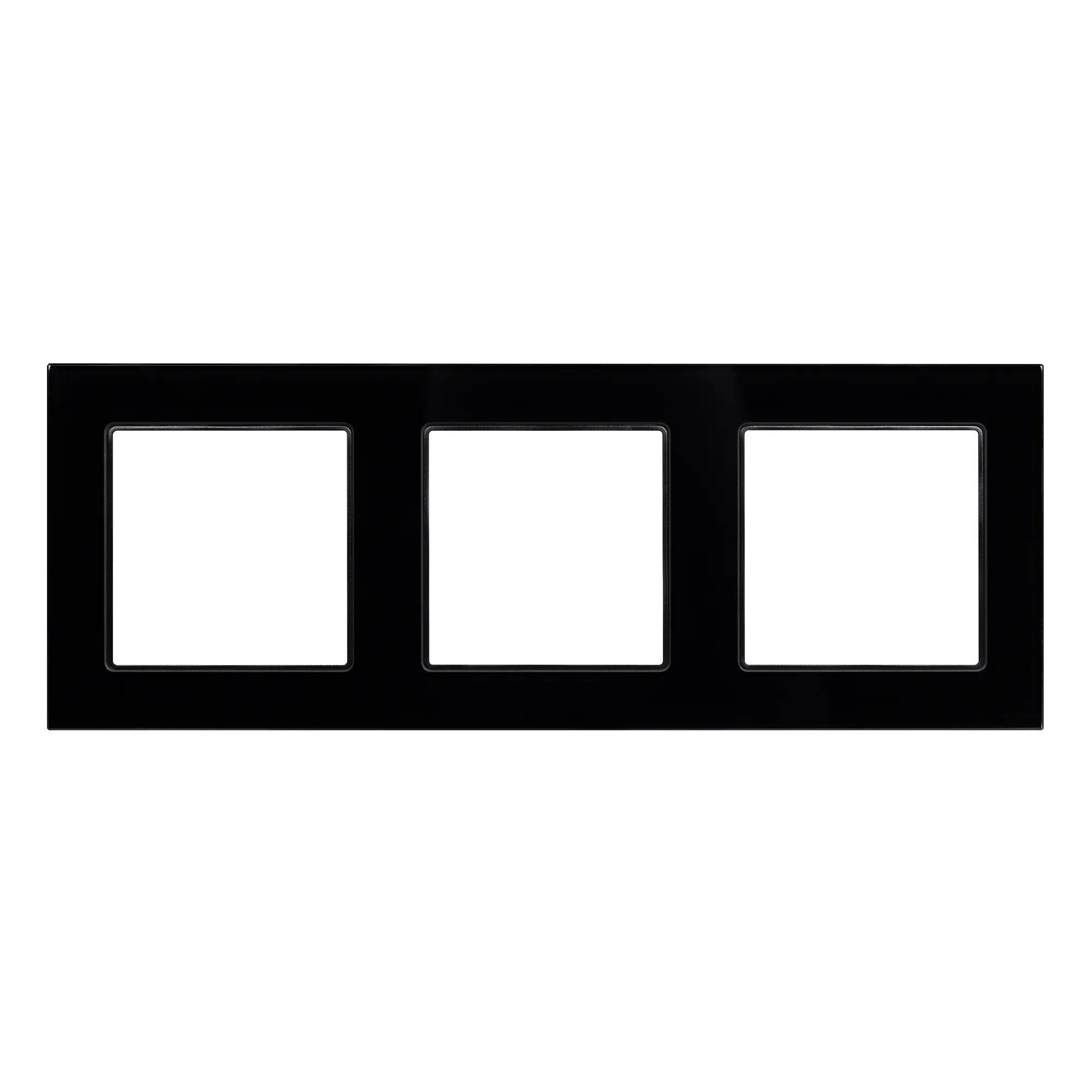 Рамка стеклянная на 3 поста, под встраиваемый механизм (квадрат). Цвет - черный. Ориентации монтажа - горизонтальная.