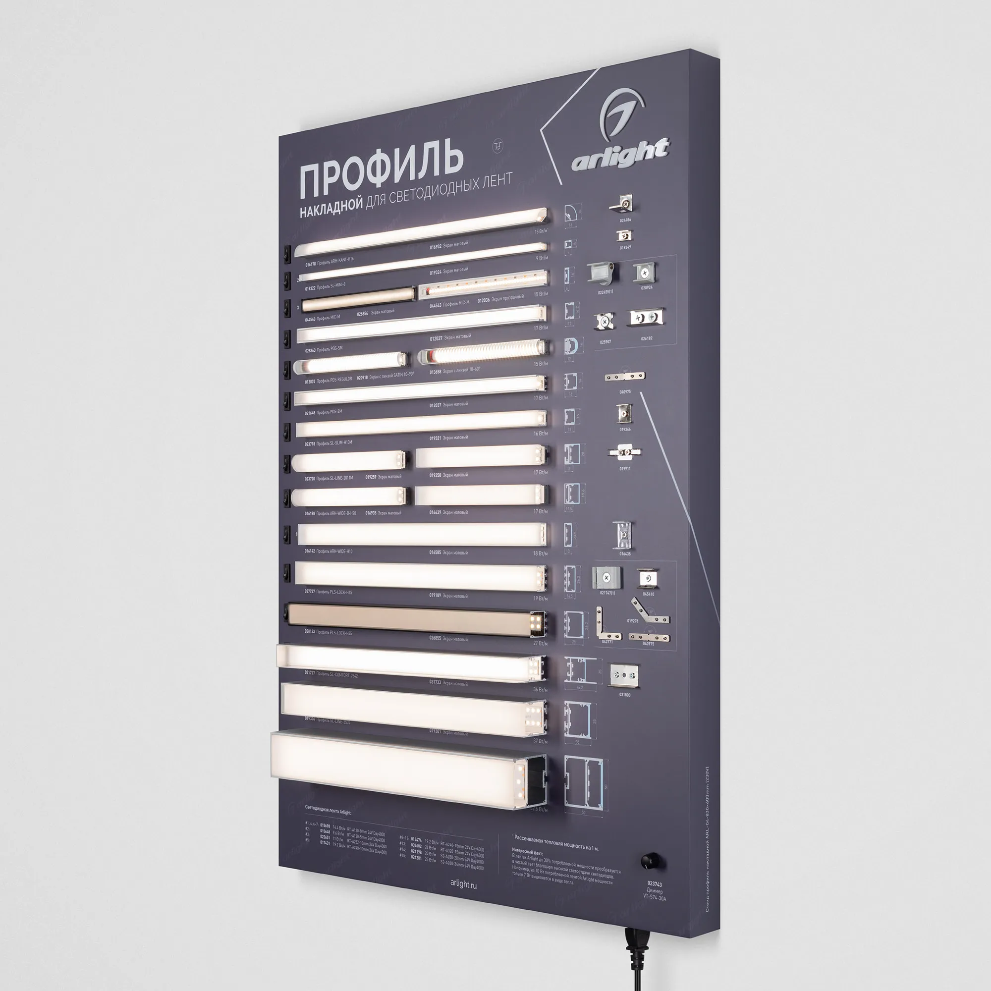 Наши специалисты знают все о продукции Arlight и с радостью помогут Вам выбрать комплектующие к товару "Стенд Профиль накладной ARL-04-830x600mm (230V) (Arlight, -)", или другие товары из раздела "Алюминиевые профили SL".