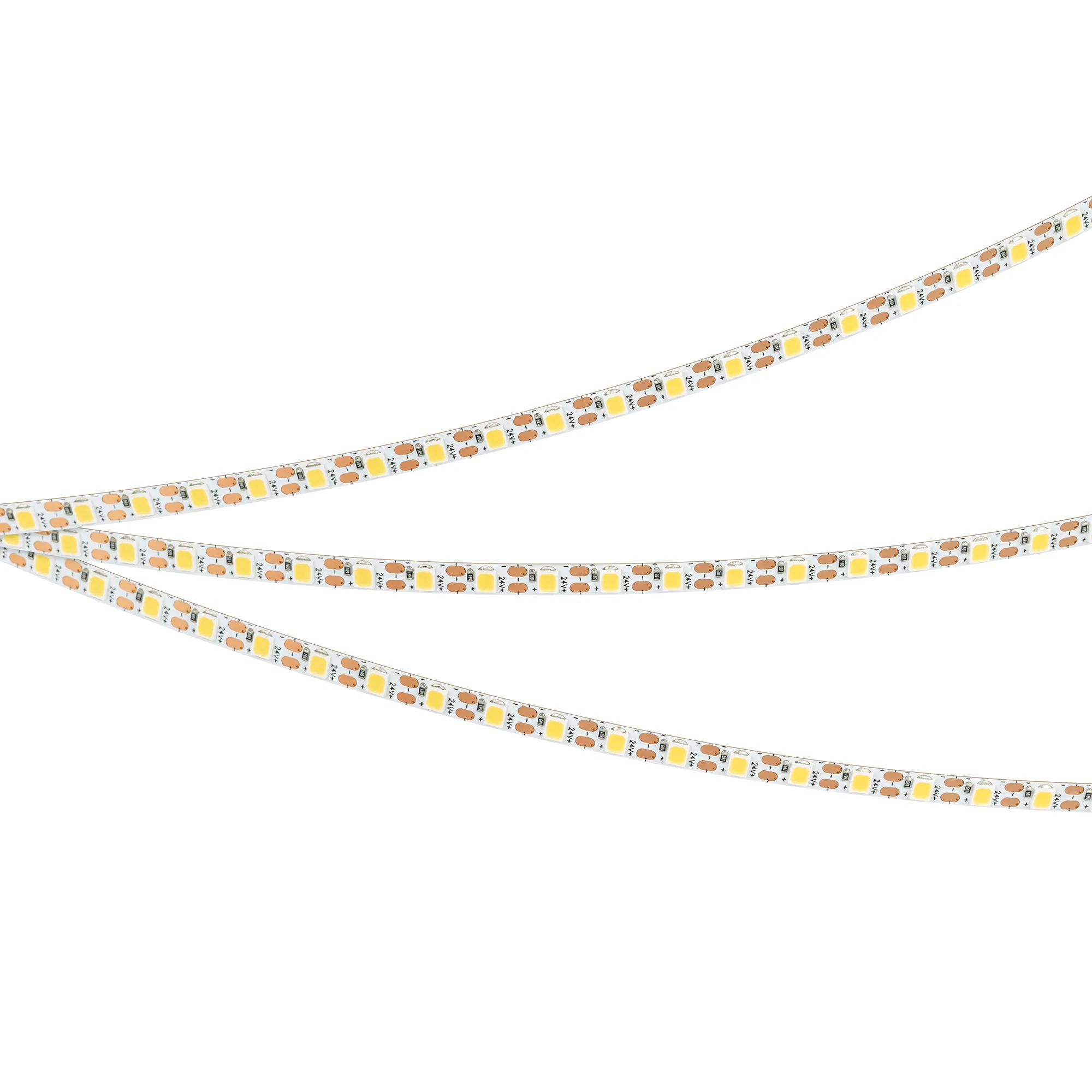 Светодиодная лента FC серии A120 с малым шагом резки. Светодиоды SMD 2835, 120 шт/м, белая плата, ширина 5 мм, скотч 3M. Цвет ТЕПЛЫЙ 2700K, индекс цветопередачи CRI>90, угол 120°. Питание 24 В, мощность 10 Вт/м (50 Вт на 5 м). Размеры 5000x5x1.2 мм. Мин. отрезок 8.33 мм, 1 светодиод. Цена за 1 м. Обязательна установка на профиль.