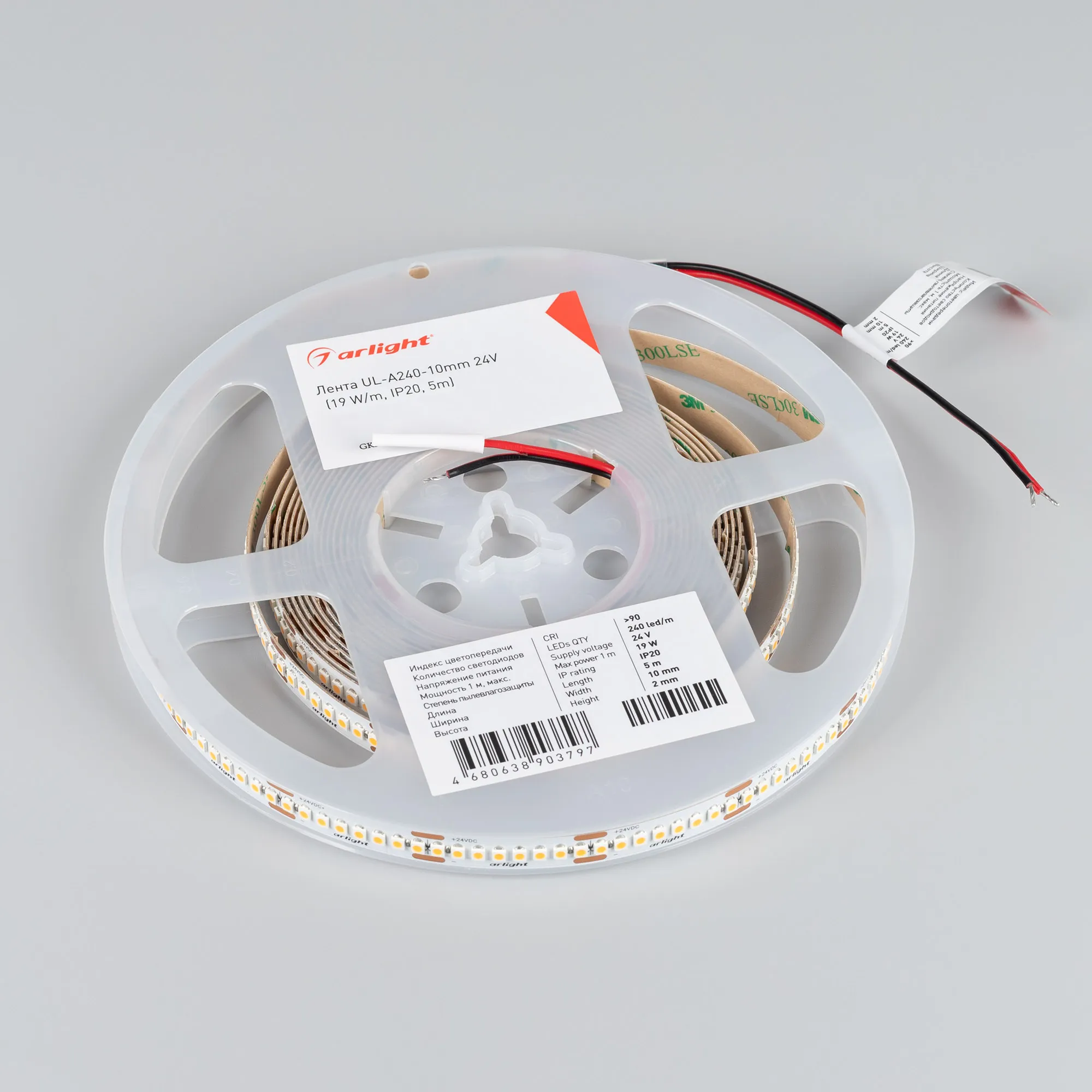 Лента UL-A240-10mm 24V Day5000 (19 W/m, IP20, 5m) (Arlight, 7 лет)