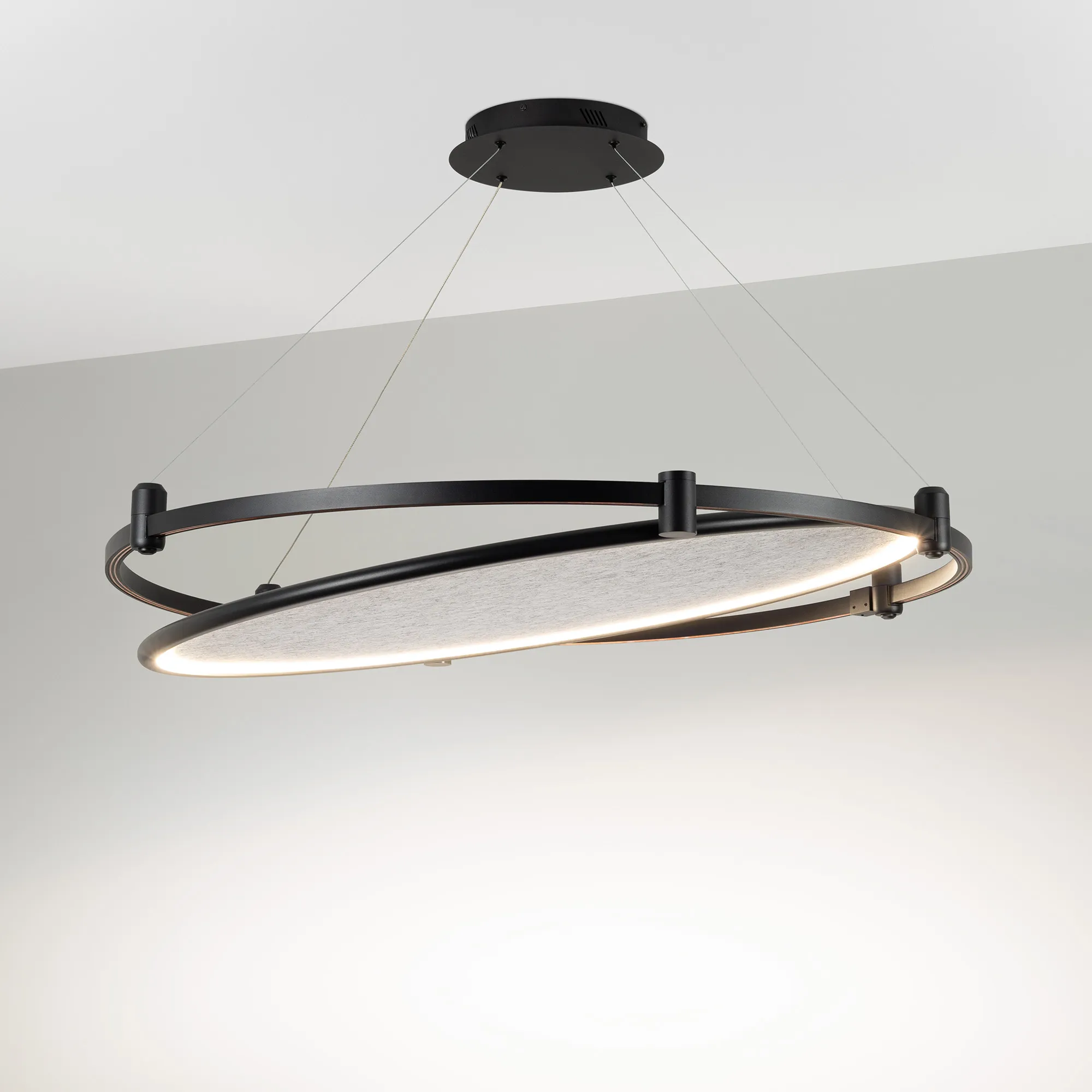 Светильник поворотный для треков APRIORI шириной 17 мм. Мощность 20 Вт, св. поток 491 лм, 23 лм/Вт, дневной 4000 K, CRI>90, угол 160°, напряжение питания 48 В. Черный круглый корпус из алюминия с серым акустическим материалом, степень защиты IP20. Размер: длина 620 мм, ширина 580 мм, высота 55 мм. Монтаж на трек APRIORI 17 мм. Угол поворота корпуса 350°. Пульсация <0,04%. Возможно диммирование по ШИМ (PWM) или не адресное управление при использовании диммируемого драйвера Dali, 0-10V, TRIAC.