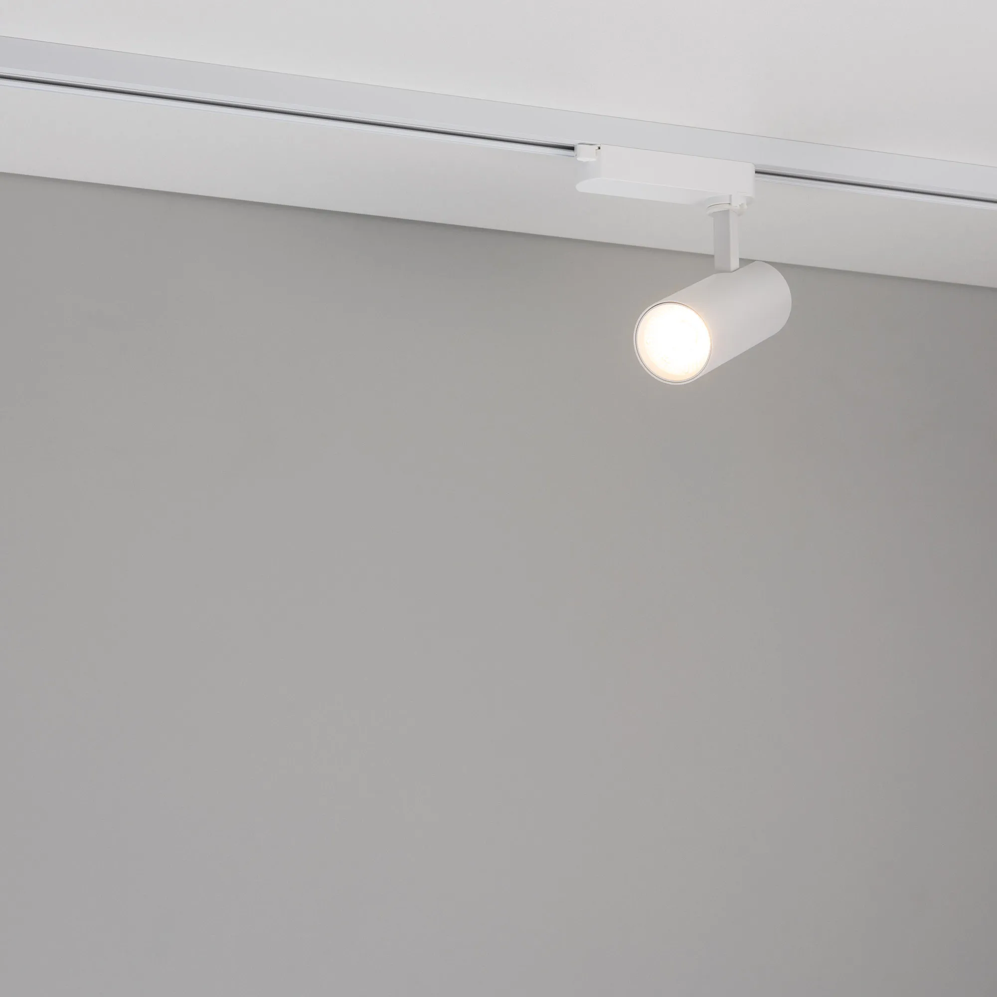 Светильник для треков/шин 2 провода. Мощность 10 Вт, св. поток без решетки honeycomb 1000 лм, 100 лм/Вт, с решеткой honeycomb 660 лм, 66 лм/Вт, теплый 3000 K, CRI>90, угол 24°, напряжение питания 230 В. Белый круглый корпус из алюминия, материал линзы PMMA, степень защиты IP20. Размер: диаметр 55 мм, длина световой части 141 мм. Монтаж на трек 1-фазный. Драйвер встроенный 25-40 В, 250мА., пульсация <5%.