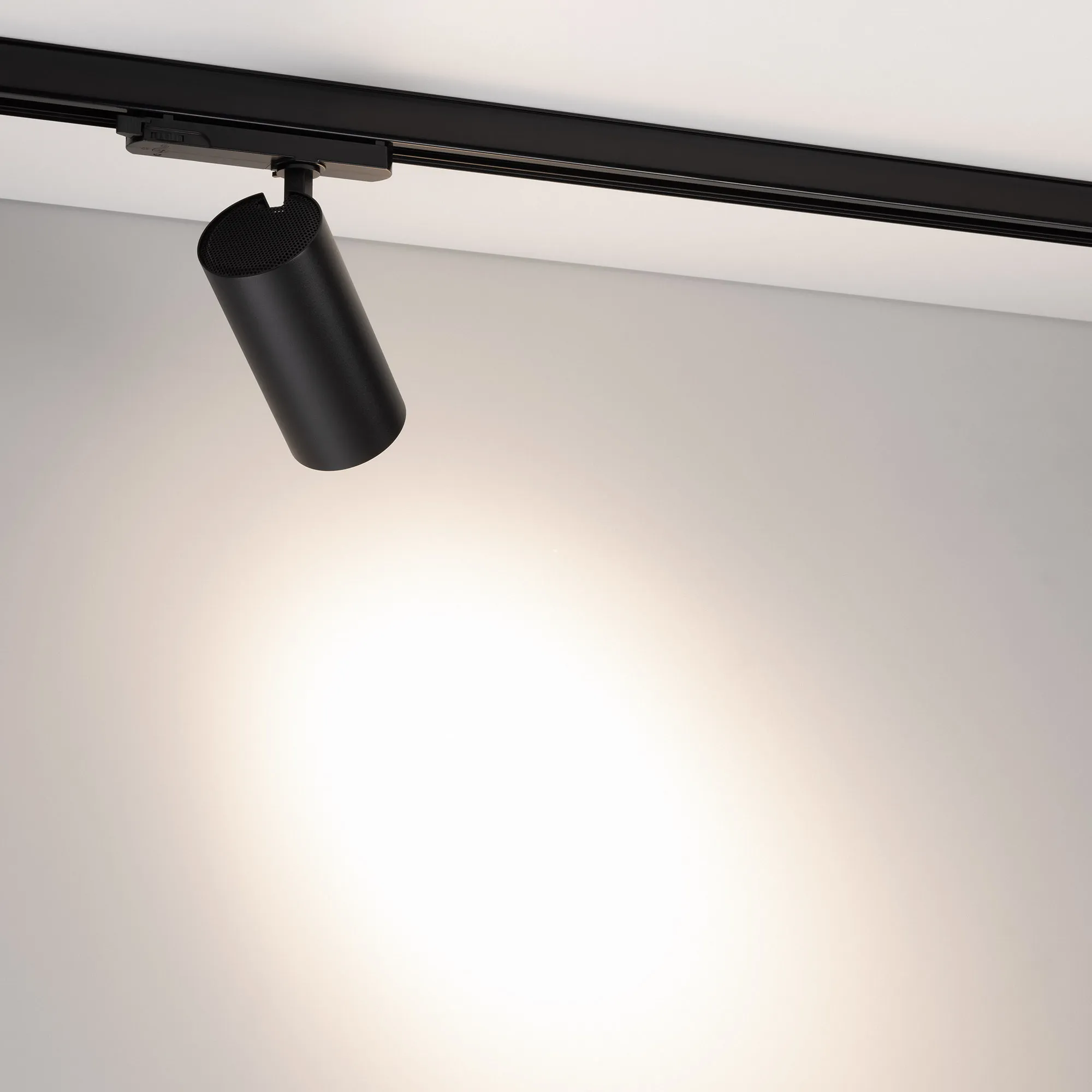 Светильник для треков/шин 4 провода. Мощность 20 Вт, св. поток без решетки honeycomb 2000 лм, 100 лм/Вт, с решеткой honeycomb 1320 лм, 66 лм/Вт, дневной 4000 K, CRI>90, угол 24°, напряжение питания 230 В. Черный круглый корпус из алюминия, материал линзы PMMA, степень защиты IP20. Размер: диаметр 74 мм, длина световой части 154 мм. Монтаж на трек 3-фазный. Драйвер встроенный 24-42 В, 500мА., пульсация <5%