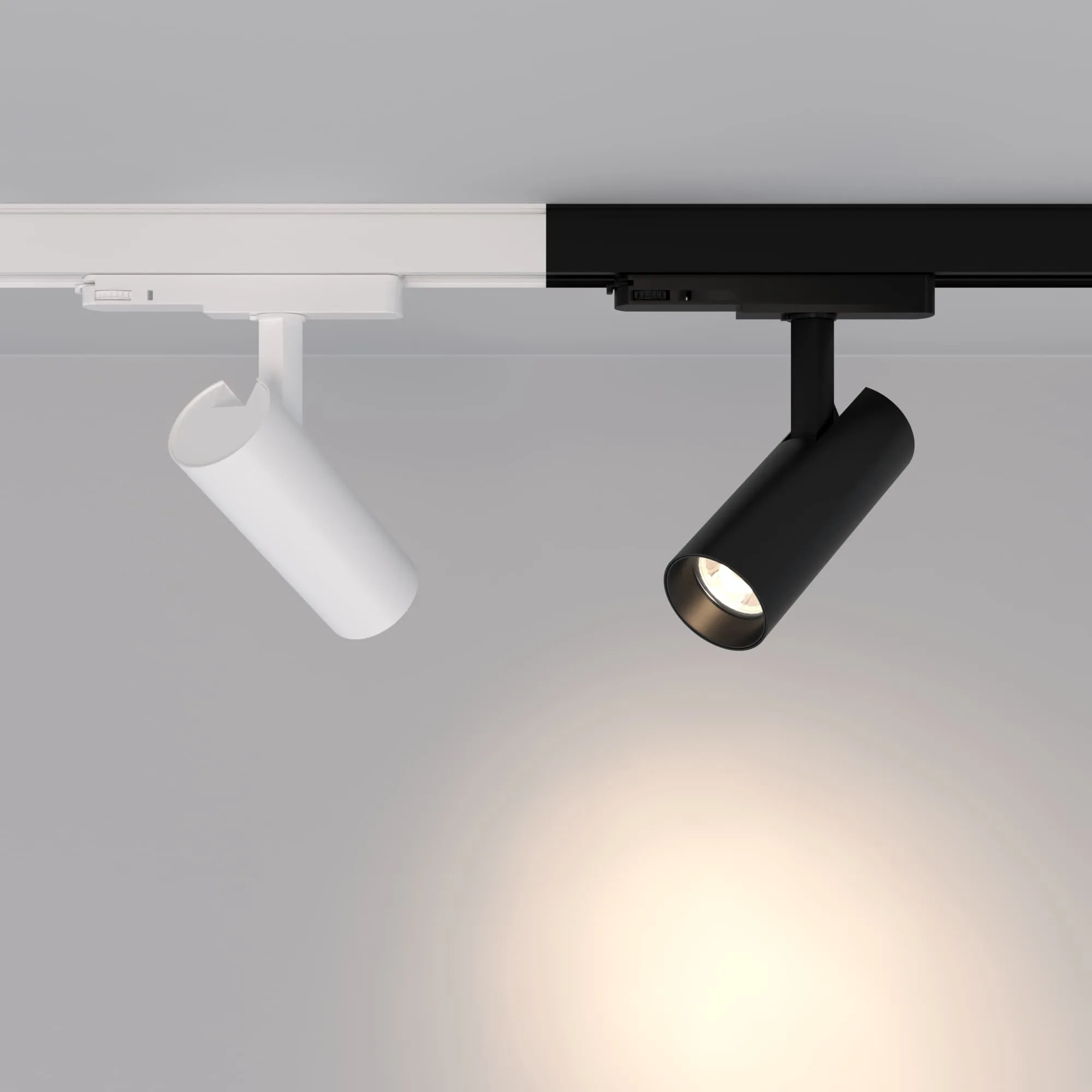 Светильник для треков/шин 4 провода. Мощность 10 Вт, св. поток без решетки honeycomb 1000 лм, 100 лм/Вт, с решеткой honeycomb 660 лм, 66 лм/Вт, дневной 4000 K, CRI>90, угол 24°, напряжение питания 230 В. Белый круглый корпус из алюминия, материал линзы PMMA, степень защиты IP20. Размер: диаметр 55 мм, длина световой части 141 мм. Монтаж на трек 3-фазный. Драйвер встроенный 24-42 В, 250мА., пульсация <5%.