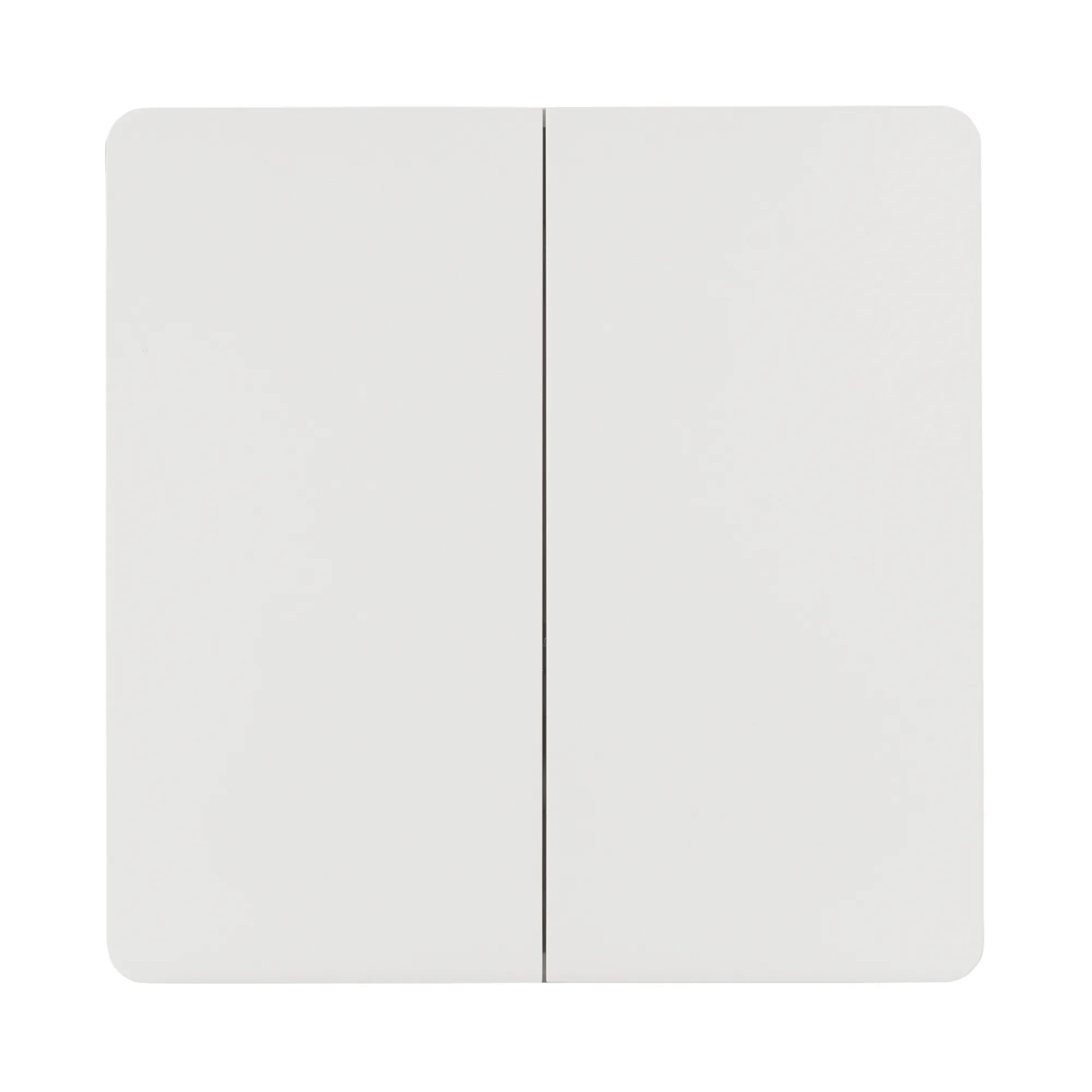 Накладная двухклавишная пластиковая панель белого цвета. Включение/выключение, диммирование двух групп света. Работает на частоте 433Мгц. Совместима с реле и диммерами серии TUYA-***-WF. Не требует питания, имеет встроенный кинетический источник питания. Защита IP67. Рабочая температура -20/+60 Дальность передачи в помещении / на улице - 30м/100м. Габариты панели 86x86x16.5 мм