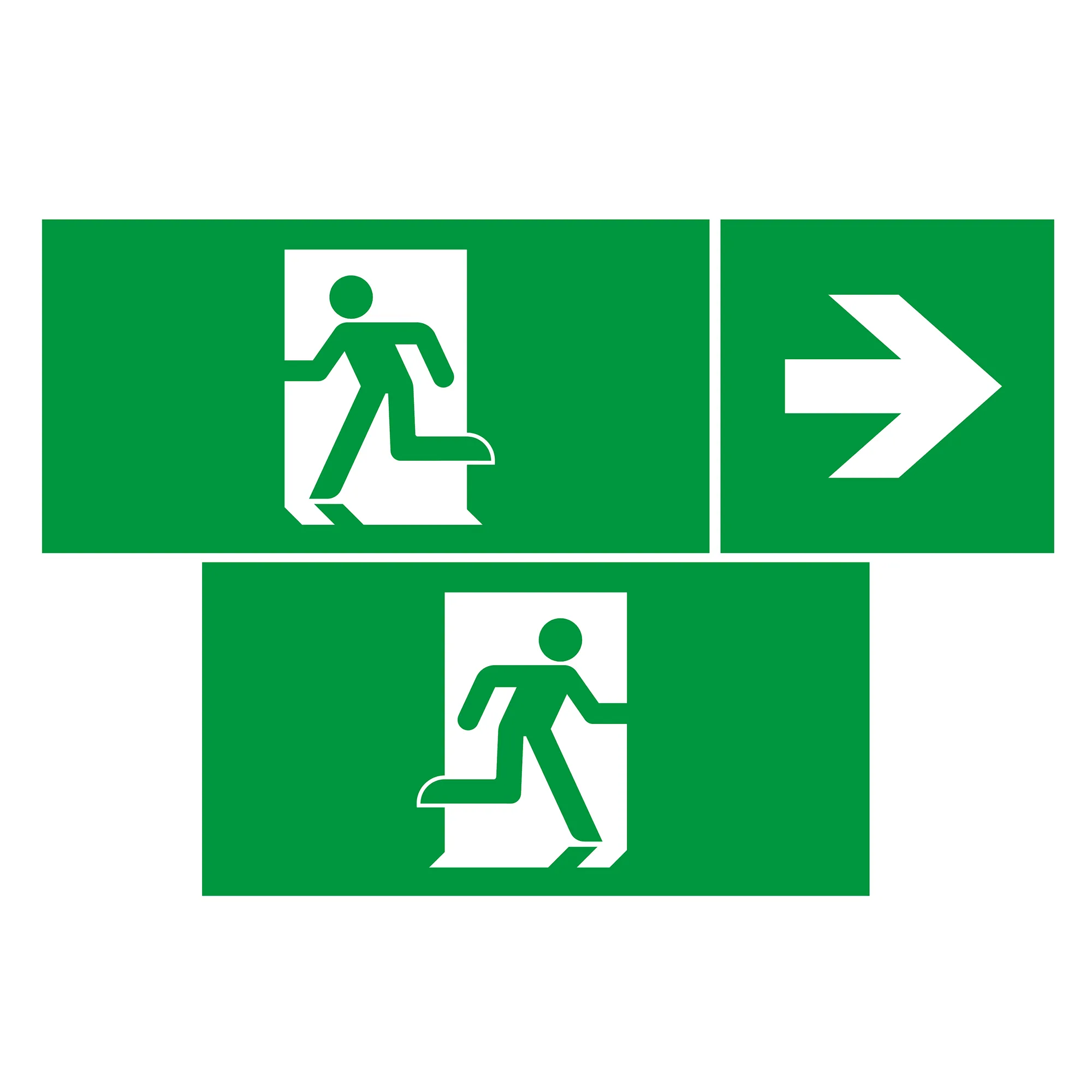 Три пиктограммы (200х100мм 2шт, 100х100мм: "Стрелка", "Бегущий человек влево", "Бегущий человек вправо") для аварийных панелей серии EMG-PROOF-L. Дают возможность установки знака направления в любую сторону. Для поклейки рекомендуется соблюдать инструкцию от аварийной панели PROOF.