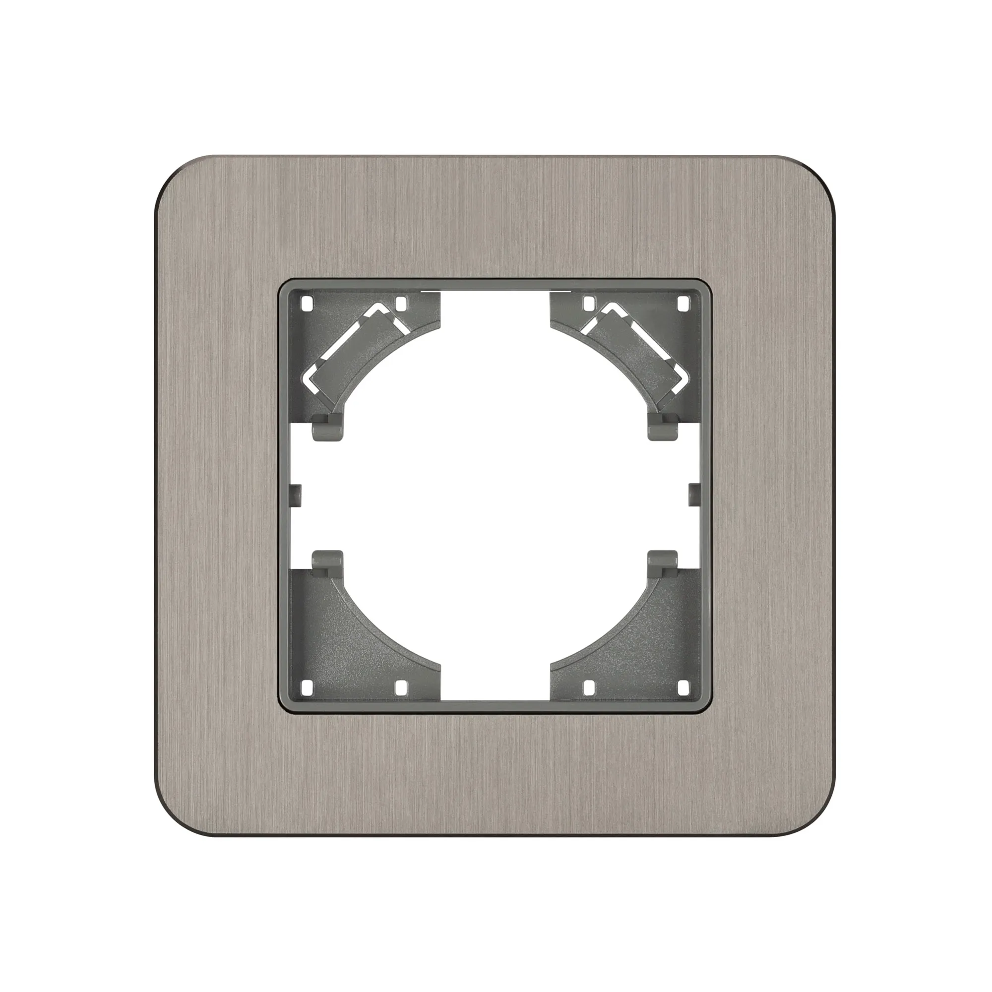 Рамка алюминиевая на 1 пост, под встраиваемый механизм. Цвет - серебристый. Уровень герметичности IP20. Ориентация монтажа - горизонтальная (основным ориентиром служат посадочные выступы для накладки механизма).
