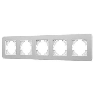 Рамка алюминиевая на 5 постов, под встраиваемый механизм. Цвет - серебристый с Soft-Touch покрытием. Уровень герметичности IP20. Ориентация монтажа - горизонтальная (основным ориентиром служат посадочные выступы для накладки механизма).