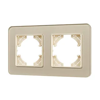 Рамка стеклянная на 2 поста, под встраиваемый механизм. Цвет - золотой. Уровень герметичности IP20. Ориентация монтажа - горизонтальная (основным ориентиром служат посадочные выступы для накладки механизма).
