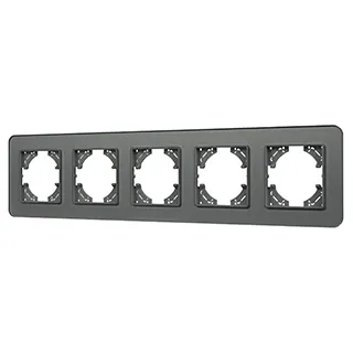 Рамка стеклянная на 5 постов, под встраиваемый механизм. Цвет - серый с Soft-Touch покрытием. Уровень герметичности IP20. Ориентация монтажа - горизонтальная (основным ориентиром служат посадочные выступы для накладки механизма).