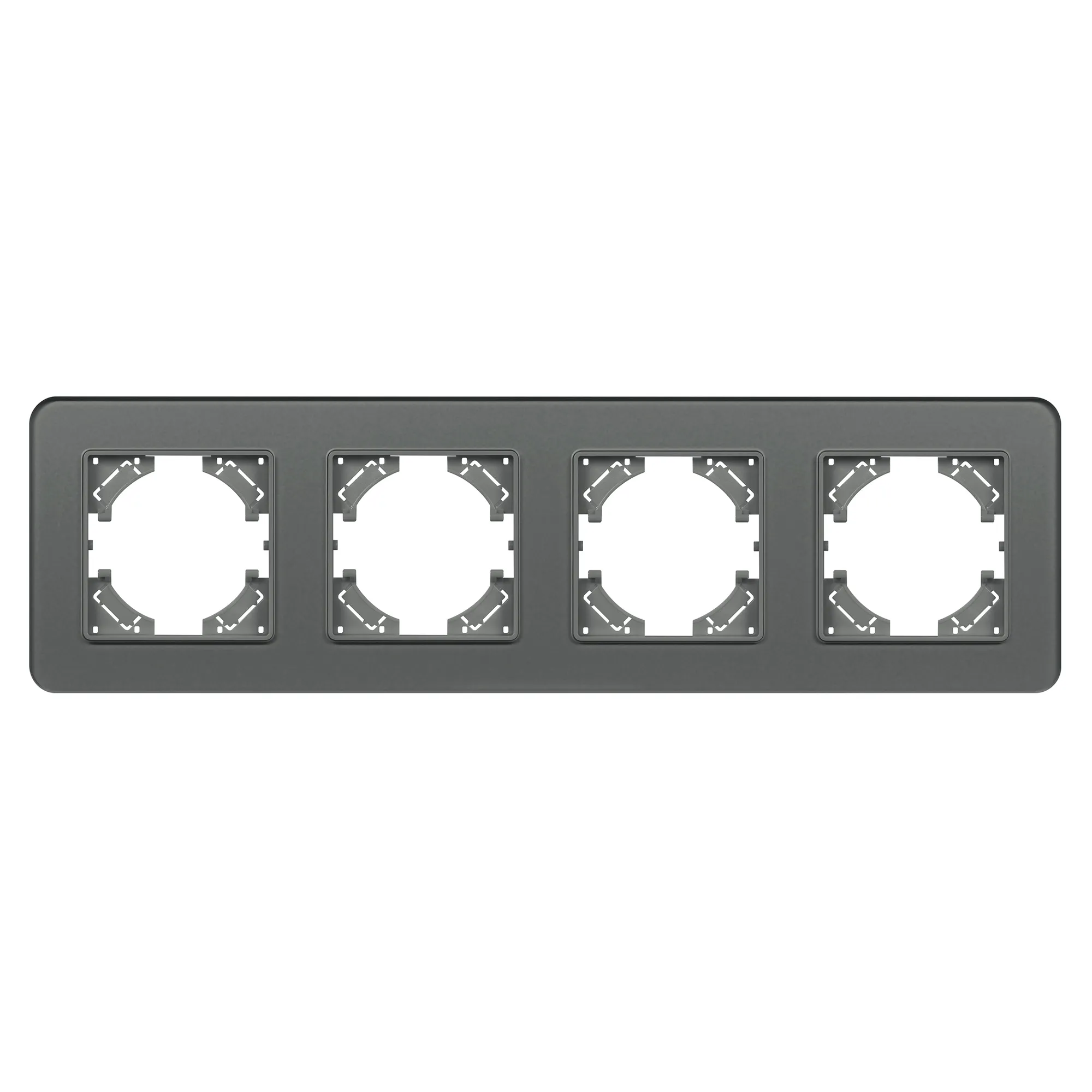 Рамка стеклянная на 4 поста, под встраиваемый механизм. Цвет - серый. Уровень герметичности IP20. Ориентация монтажа - горизонтальная (основным ориентиром служат посадочные выступы для накладки механизма).