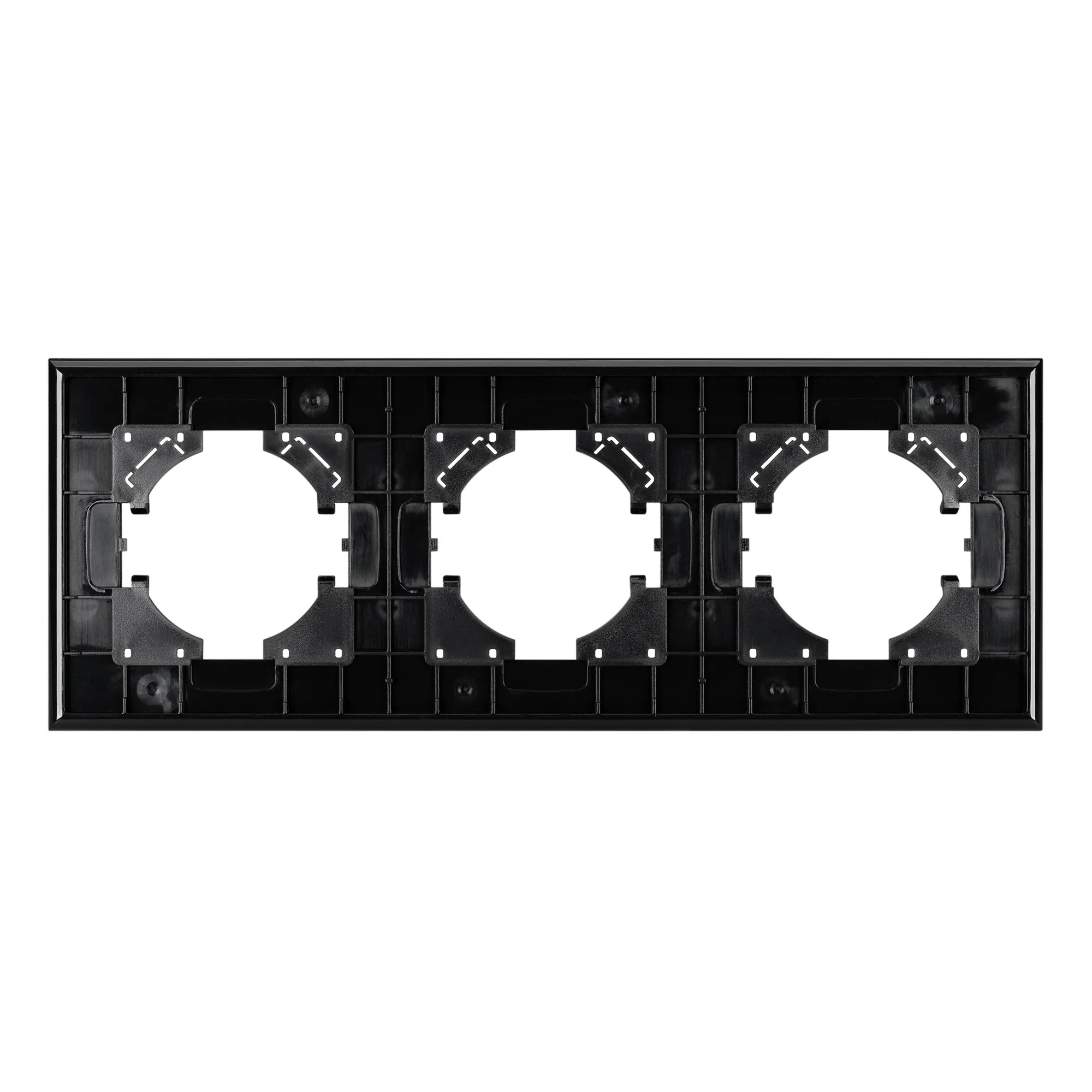 Рамка пластиковая на 3 поста, под встраиваемый механизм, с накладкой из натурального дерева. Цвет накладки - натуральное дерево*, цвет рамки - черный. Уровень герметичности IP20. Ориентация монтажа - горизонтальная (основным ориентиром служат посадочные выступы для накладки механизма).