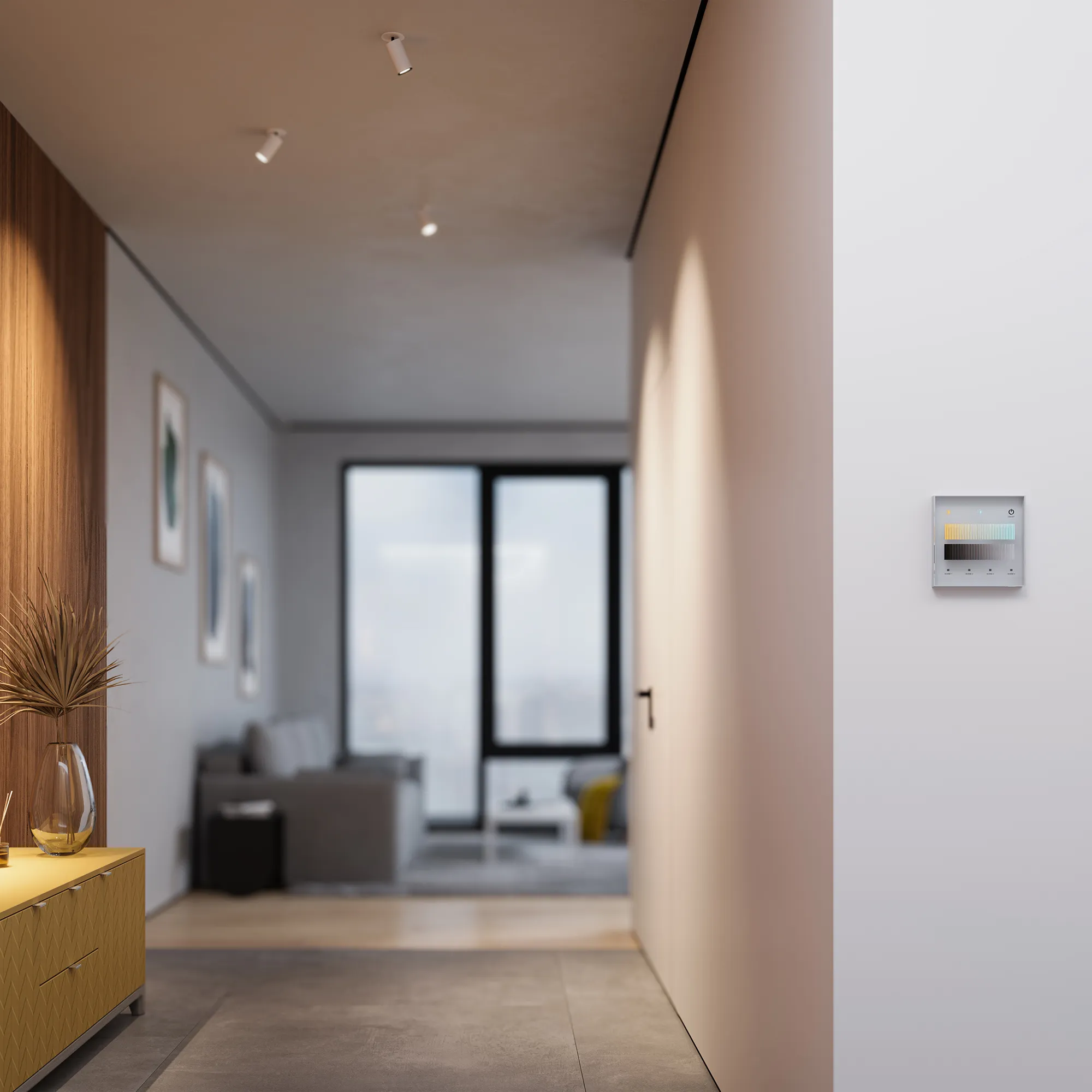 Встраиваемая стеклянная сенсорная панель DIM с выходом DALI. Цвет- белый. Управление DALI 1 адрес / DALI группа / DALI Broadcast. Установка адресов управления выполняется переключателями на корпусе. Питание 24VDC, либо по шине DALI. Сохранение 4-х пользовательских сценариев. Доступно управление с помощью пультов RF 2.4GHz серии SMART. Размеры: 86x86x34.5 мм