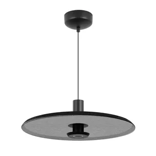 Подвесной светильник. Мощность 12 Вт, св. поток 648 лм, 64 лм/Вт, теплый 2700 K, CRI>94, угол 36°, напряжение питания 230 В. Темно-серый фигурный плафон из переработанного фетра со светло-серой внутренней поверхностью, линза-рассеиватель из PMMA, степень защиты IP20. Размер: диаметр 450 мм, высота 145 мм. Монтаж подвесной, длина подвеса 2000 мм, регулируемая. В комплекте 2 вида чаш. Габариты чаши (встраиваемая) Ø80 х 23 мм, врезное отверстие Ø60 мм. Габариты чаши (накладная) Ø120 x 35 мм. Драйвер 59В, 300 мА, пульсация <1%. Управление по TRIAC.