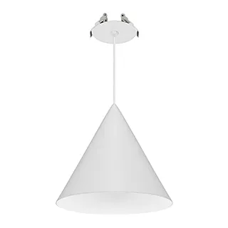 Подвесной светильник. Мощность 10 Вт, св. поток 550 лм, 55 лм/Вт, теплый2700 K, CRI>94, угол 36°, напряжение питания 230 В. Белый корпус из алюминия в форме конуса с белой внутренней поверхностью, линза-рассеиватель из PMMA, степень защиты IP20. Размер: диаметр 180 мм, высота 175 мм. Монтаж подвесной, длина подвеса 2000 мм, регулируемая. В комплекте две чаши. Габариты чаши (встроенной) Ø80 х 41 мм, врезное отверстие Ø55 мм, габариты чаши (накладной) Ø110 х 25 мм. Драйвер 2,8-12В, 500 мА, пульсация <1%. Управление по TRIAC.