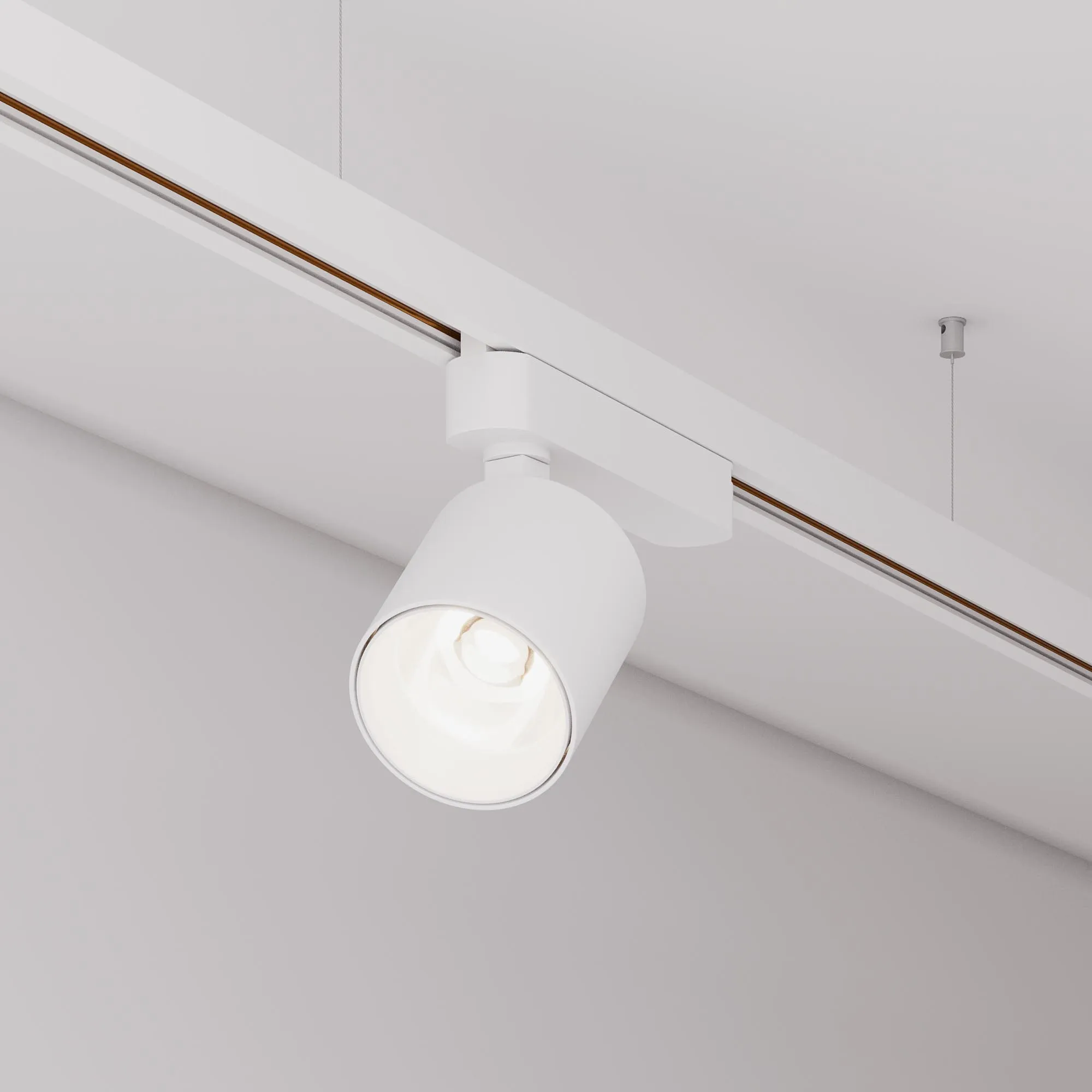 Светильник для однофазных треков, 16 Вт. Цвет свечения ТЁПЛЫЙ 3000K, световой поток 1550 лм, угол 50°, CRI>90. Корпус круглый, металл, цвет белый, IP20. Размеры Ø74x69,6 мм. Монтаж на трек 1-фазный. Входное напряжение AC220-240V, мощность 20 Вт. Драйвер встроенный (25-40V, 500 mA).Пульсация <1%.