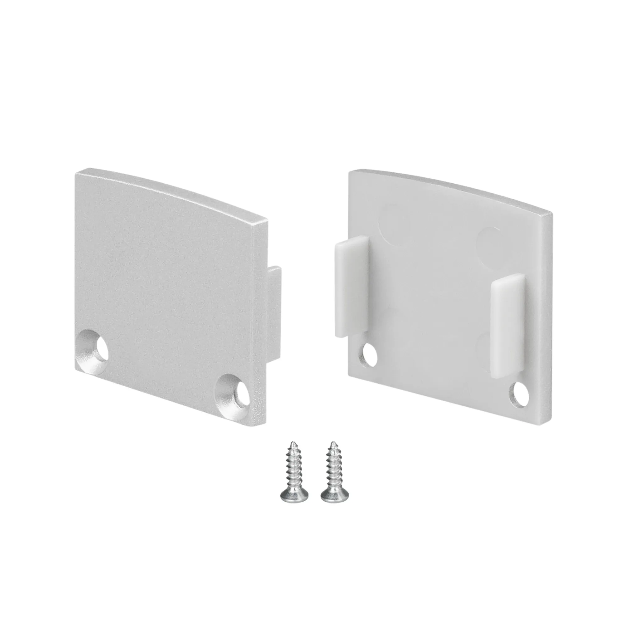 Серебристые глухие заглушки (комплект 2 шт.) для профиля FANTOM-W20-H20, FANTOM-W20-H20-EDGE, WIDE-H20. В комплекте 2 заглушки, 2 шурупа. Материал - пластик. Цена за комплект.