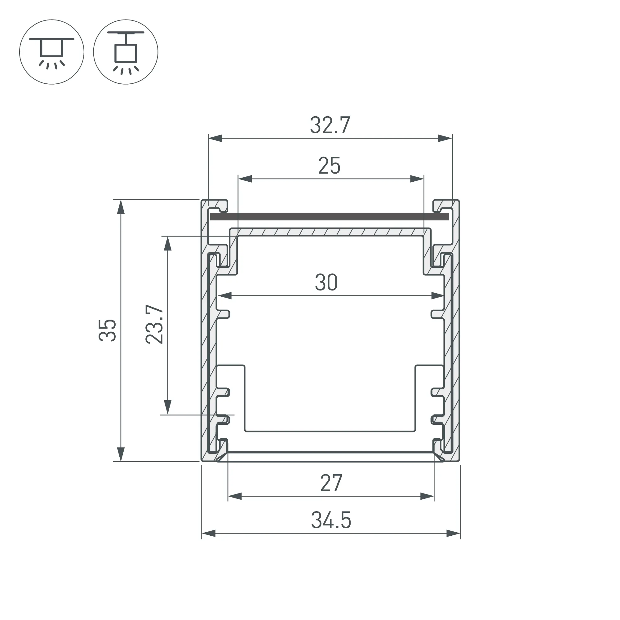 Профиль LINE-3535-BENT-SIDE-2000 ANOD (Arlight, Алюминий)