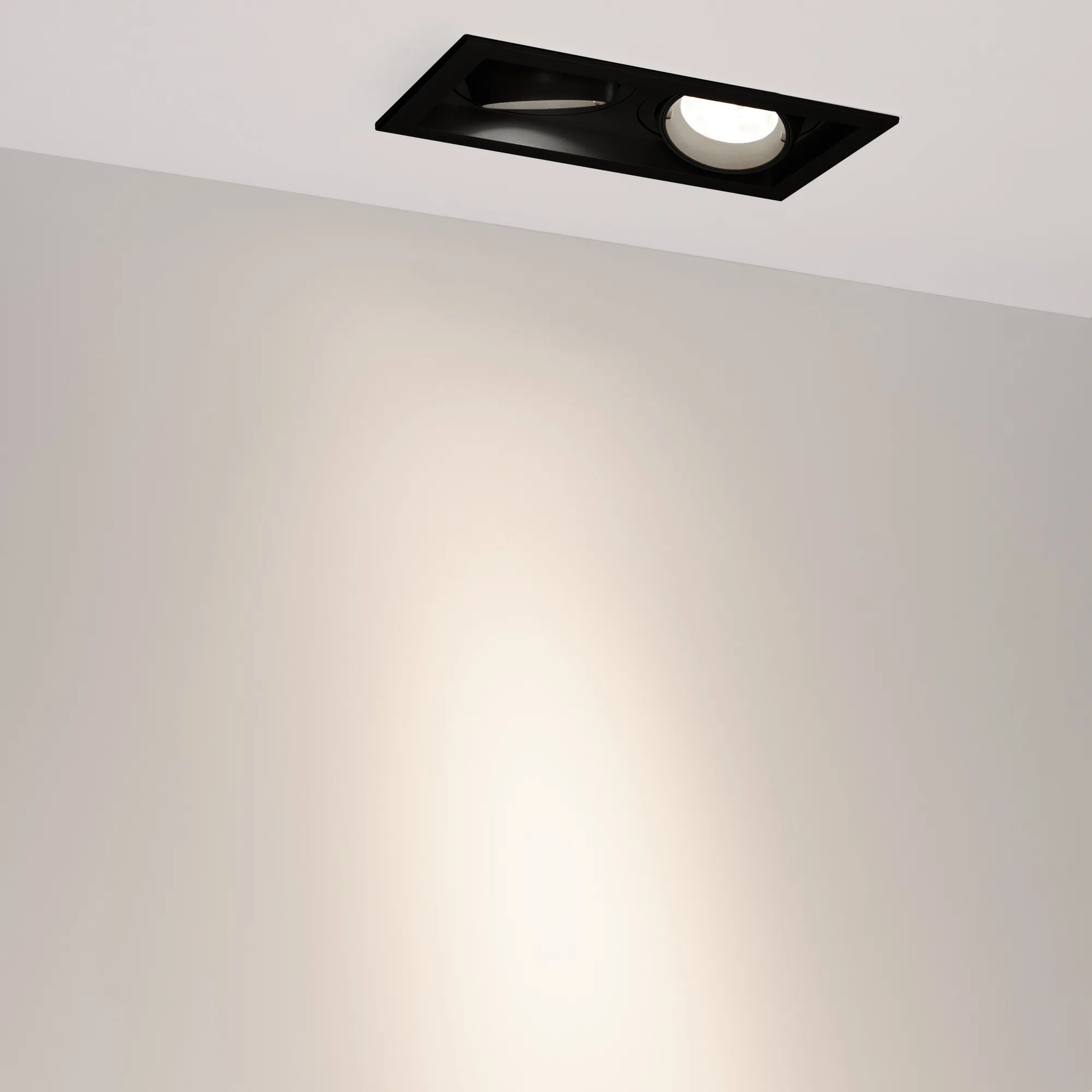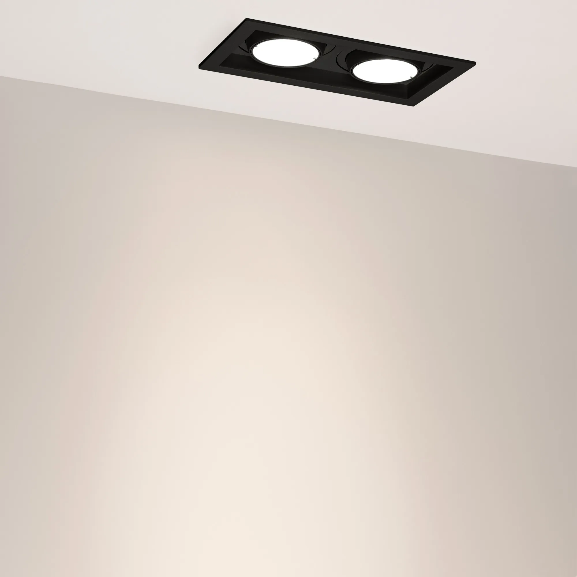 Поставка под заказ от 30 шт. Встраиваемый карданный светильник. Мощность 2х20 Вт, св. поток 4134 лм, 103 лм/Вт, дневной 4000 K, CRI>92, угол 20°, напряжение питания 230 В. Чёрный корпус из алюминия, белая вставка, степень защиты IP20. Размер: длина 210 мм, ширина 117 мм, высота 105 мм. Монтаж встраиваемый, установочное отверстие: длина 190 мм, ширина 95 мм. Драйвер 24-42 В, 500 мА, пульсация <2%.