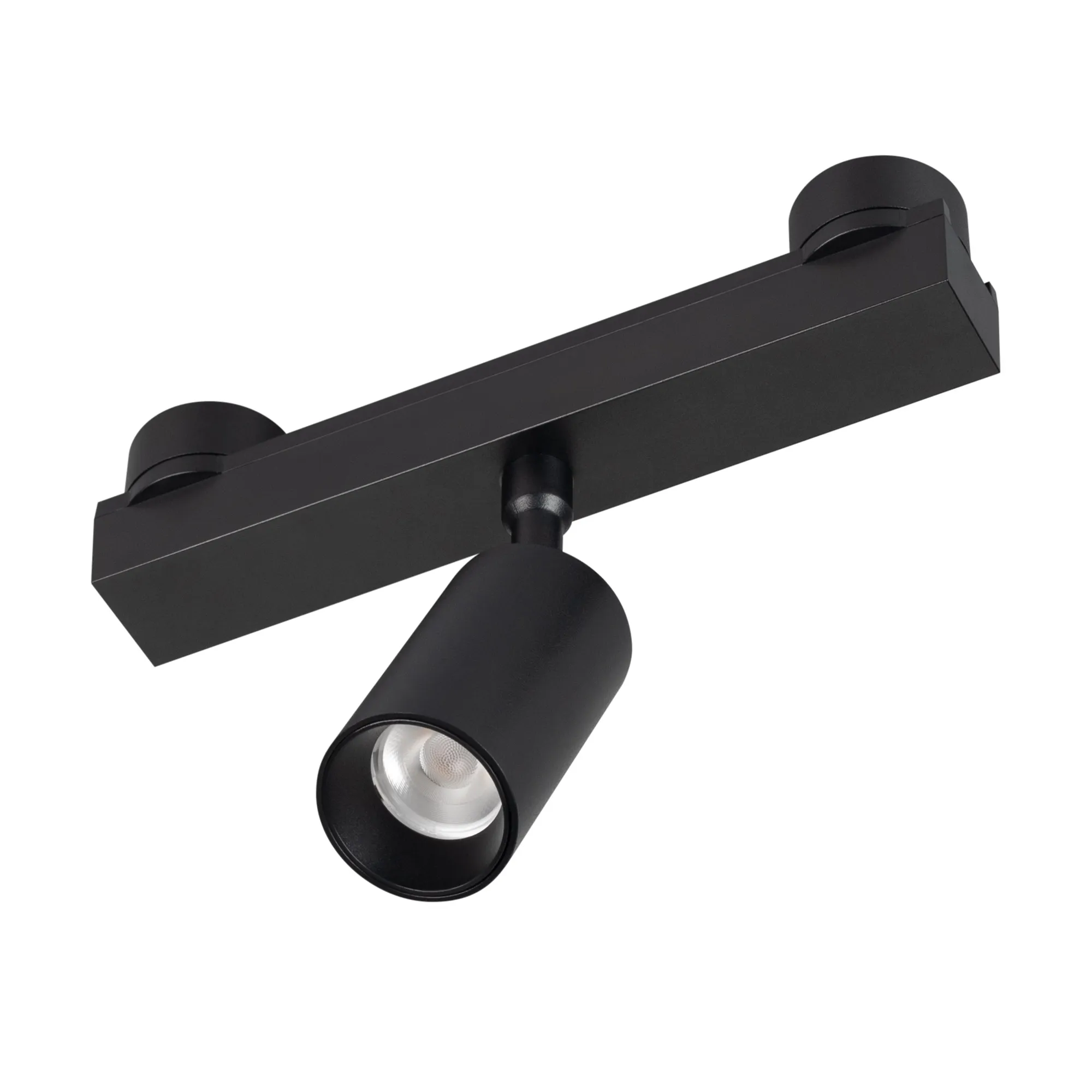 Светильник ART-INBELT-SPOT-R45. Мощность 7Вт, св. поток 579 лм-678 лм, 82-97лм/Вт, изменяемая цветовая температура 2700-6500 К, CRI>92, угол 25°, напряжение питания 48 В. Черный фигурный корпус из алюминия, экран поликарбонат. Степень защиты IP20.