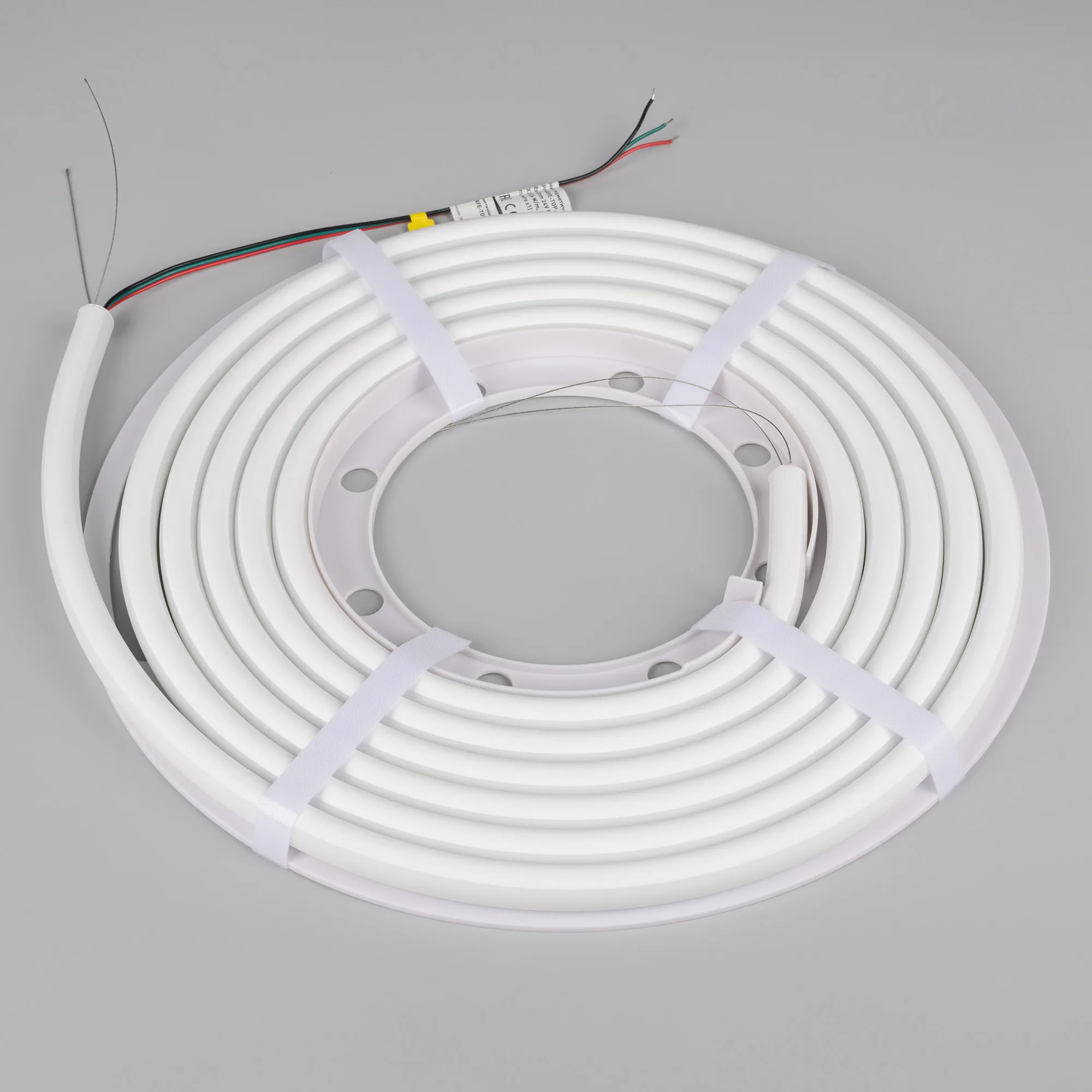 Гибкая герметичная лента (неон серии WAVE), сечение 18×15 мм с тросом-натяжителем. Светодиоды SMD3838 200 шт/м. Цвет свечения RGB, входной сигнал SPI (микросхема UCS1903, ??? пикселей/метр), 3 канала управления, угол излучения 360°. Мощность 26 Вт/м, питание 12 В. Класс пылевлагозащиты IP54. Размеры 5000×18×15 мм. Мин. отрезок 10 мм. Изгиб согласно метки на корпусе, минимальный радиус изгиба 150 мм. Кабель питания длиной 500 мм, вывод с одной стороны вдоль линии сечения неона. Катушка 5 м. Цена за 1 м. Гарантия 3 года.