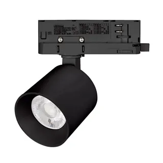 Светильник для трехфазных треков, 8 Вт с управлением DALI. Цвет свечения ТЁПЛЫЙ 3000K, световой поток 856 лм, угол 38°, CRI>90. Корпус круглый, металл, цвет черный, IP20. Размеры Ø60x59,7 мм. Входное напряжение AC220-240V. Драйвер встроенный 10-42В (300-800 мА), 50/60Гц, максимальная мощность 42W.