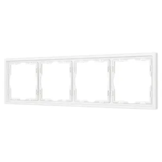 Рамка пластиковая на 4 поста, под встраиваемый механизм. Цвет - белый кварц, с Soft-Touch покрытием. Среднего уровня герметичности IP20. Ориентация монтажа горизонтальная.