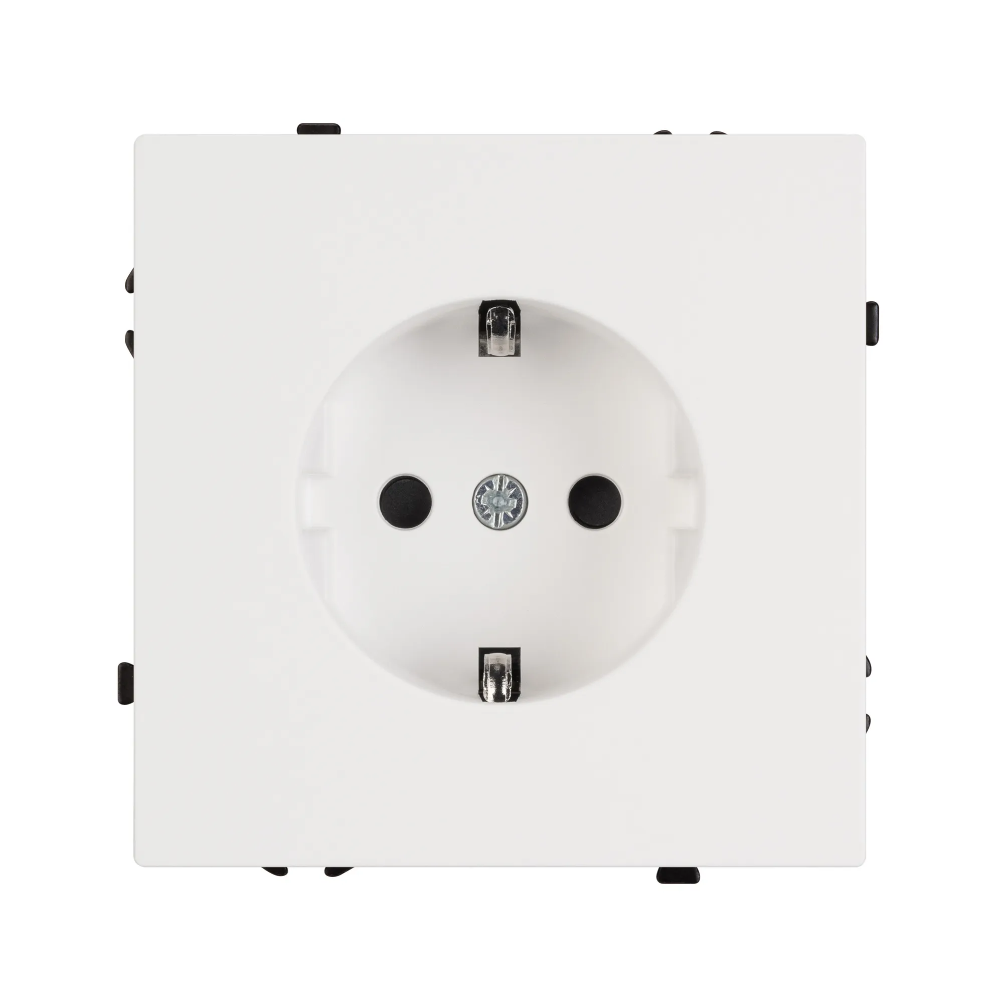 Механизм розетки с заземлением на 1 пост. Цвет - белый кварц, с Soft-Touch покрытием. Без фронтальной рамки. Уровень пылевлагозащиты IP20. Розетка устанавливается в стандартный подрозетник круглого сечения диаметром 60мм.