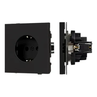 Механизм розетки с заземлением на 1 пост. Цвет - черный оникс, с Soft-Touch покрытием. Без фронтальной рамки. Уровень пылевлагозащиты IP20. Розетка устанавливается в стандартный подрозетник круглого сечения диаметром 60мм.