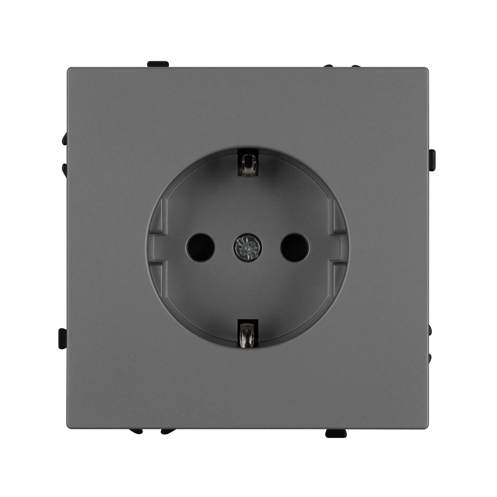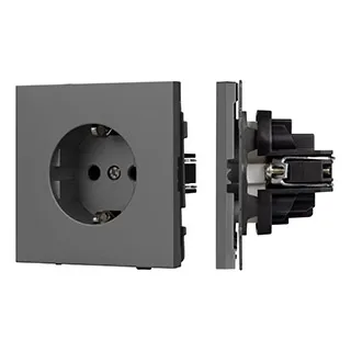 Механизм розетки с заземлением на 1 пост. Цвет - серый базальт, с Soft-Touch покрытием. Без фронтальной рамки. Уровень пылевлагозащиты IP20. Розетка устанавливается в стандартный подрозетник круглого сечения диаметром 60мм.