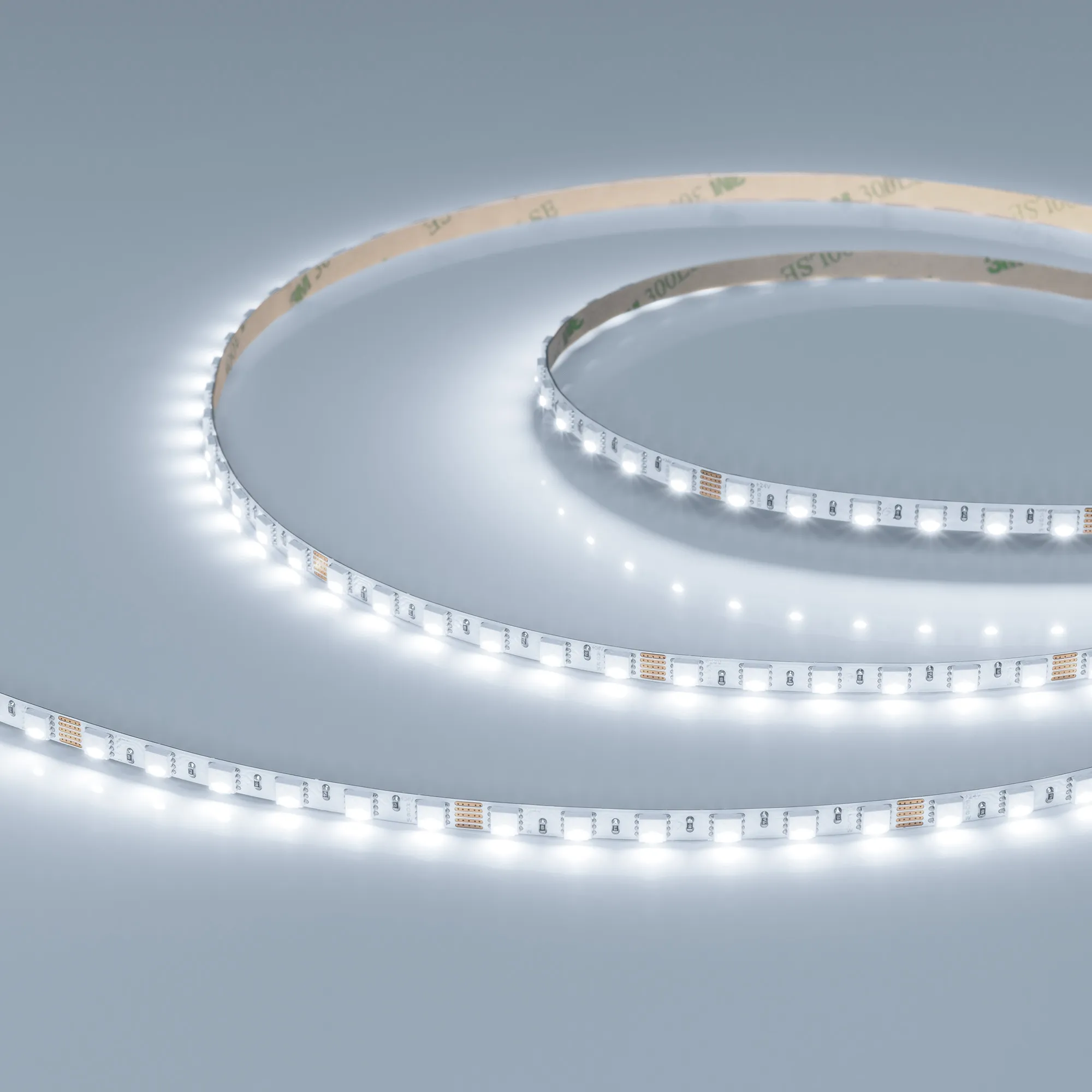 Светодиодная узкая лента RT серии H96. Светодиоды SMD 4040, 96 шт/м, белая плата, ширина 5 мм, скотч 3M. Цвет RGB + БЕЛЫЙ 6000K, индекс цветопередачи CRI>90, угол 120°. Питание 24 В, мощность 10 Вт/м (50 Вт на 5 м). Размеры 5000x5x2 мм, мин. отрезок 62.5 мм, 6 светодиодов. Цена за 1 м. Обязательна установка на профиль.