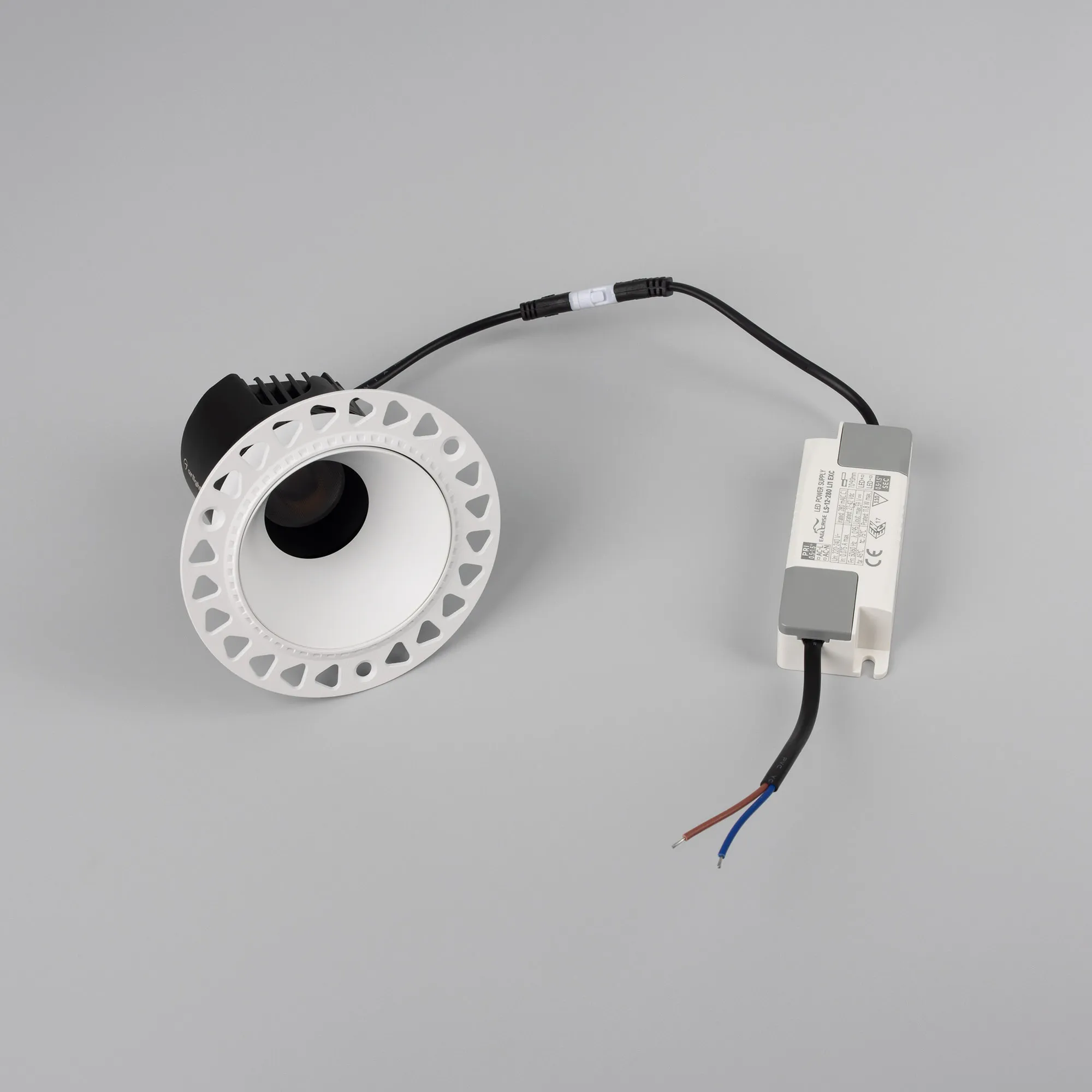 Встраиваемый светильник даунлайт. Мощность 12 Вт, св. поток 905 лм, 75 лм/Вт, теплый 3000 K, CRI>92, угол 55°, напряжение питания 230 В. Белый круглый корпус из алюминия, белый матовый отражатель, степень защиты IP20 . Размер: диаметр 105 мм, высота 87 мм. Монтаж встраиваемый, установочное отверстие: диаметр 75 мм. Драйвер 27-42 В, 280 мА, пульсация <0,5%.