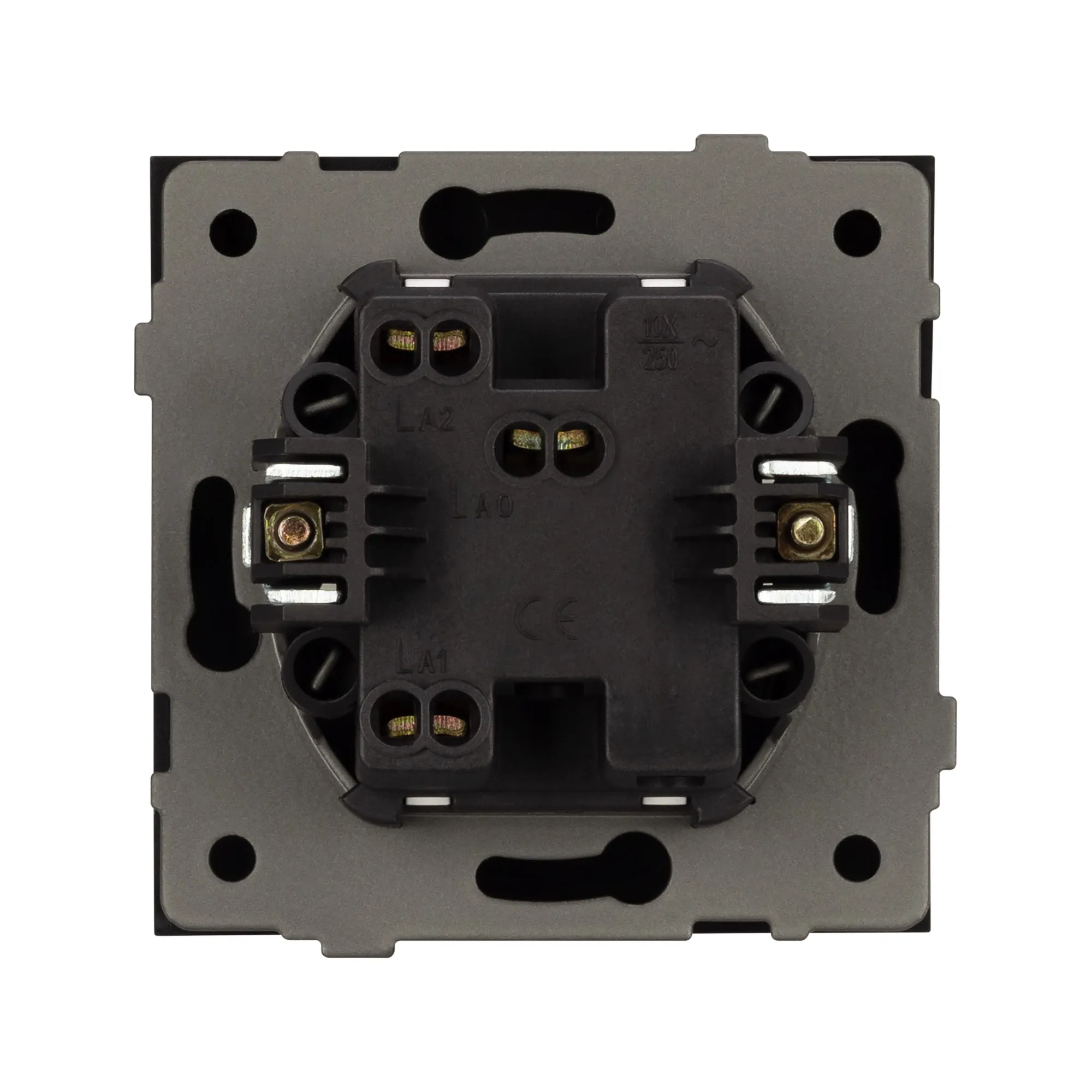 Механизм звонкового выключателя на 1 пост 1 клавиша. Цвет - черный, с Soft-Touch покрытием. Без фронтальной рамки. Уровень пылевлагозащиты IP20. Выключатель устанавливается в стандартный подрозетник круглого сечения диаметром 60мм.