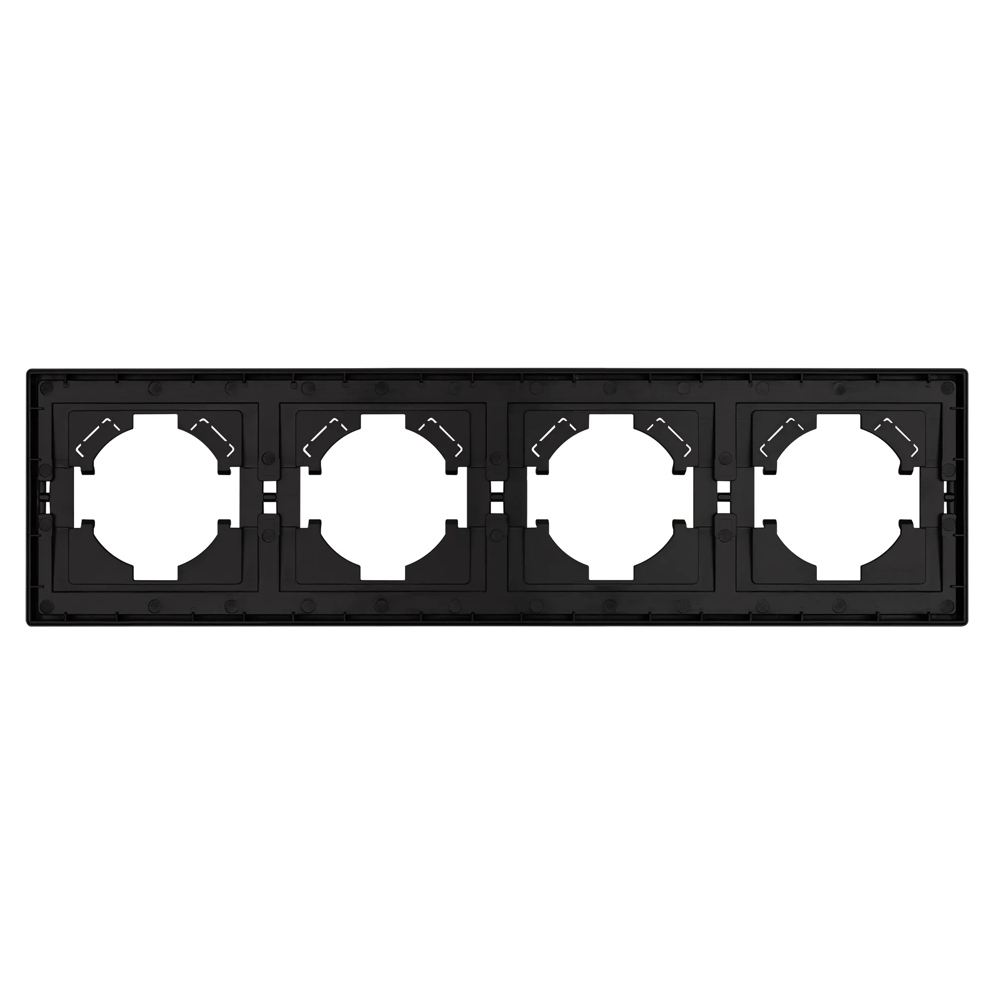 Рамка пластиковая на 4 поста, под встраиваемый механизм. Цвет - черный. Уровень герметичности IP20. Ориентация монтажа горизонтальная.
