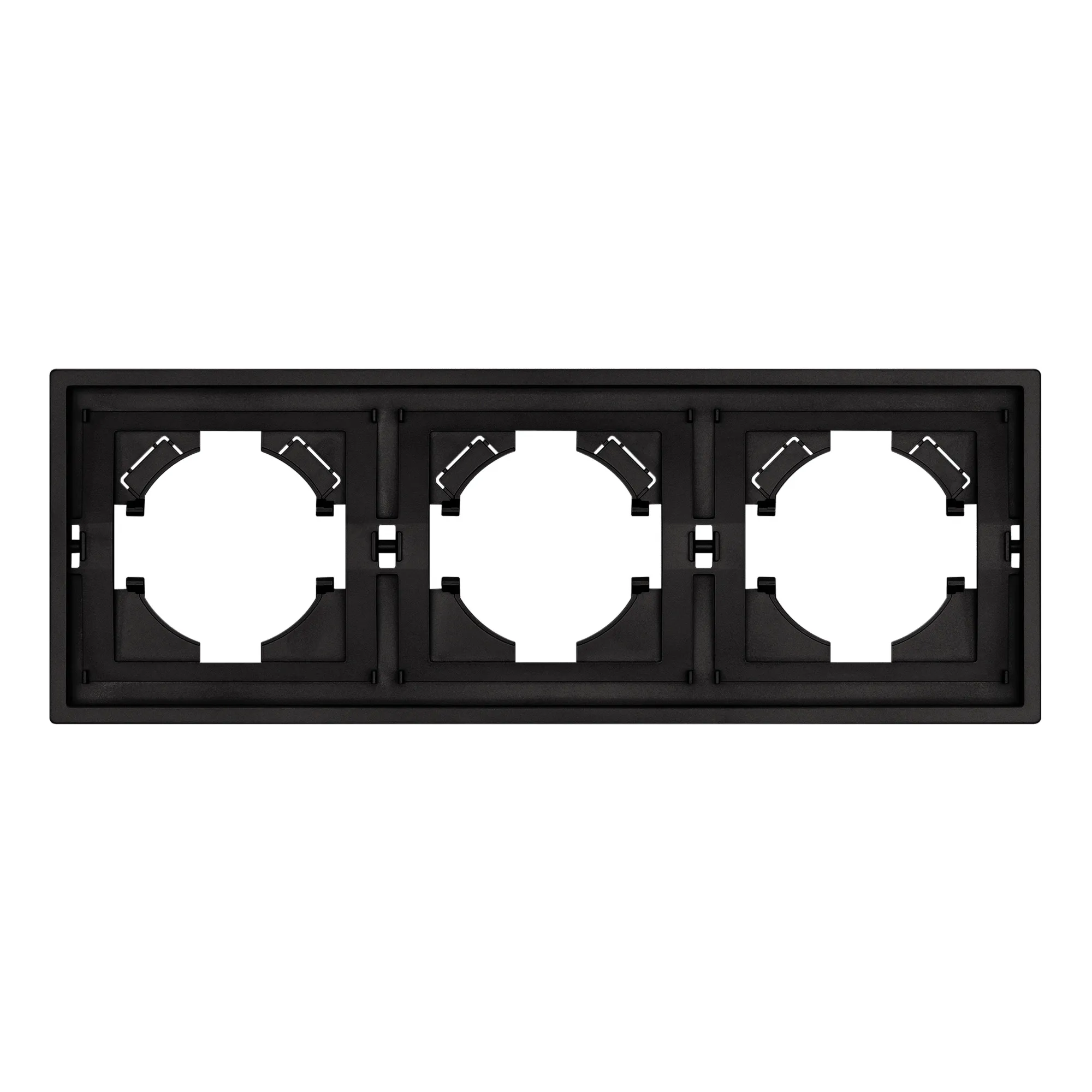 Рамка пластиковая на 3 поста, под встраиваемый механизм. Цвет - матовый черный, с Soft-Touch покрытием. Уровень герметичности IP20. Ориентация монтажа горизонтальная.