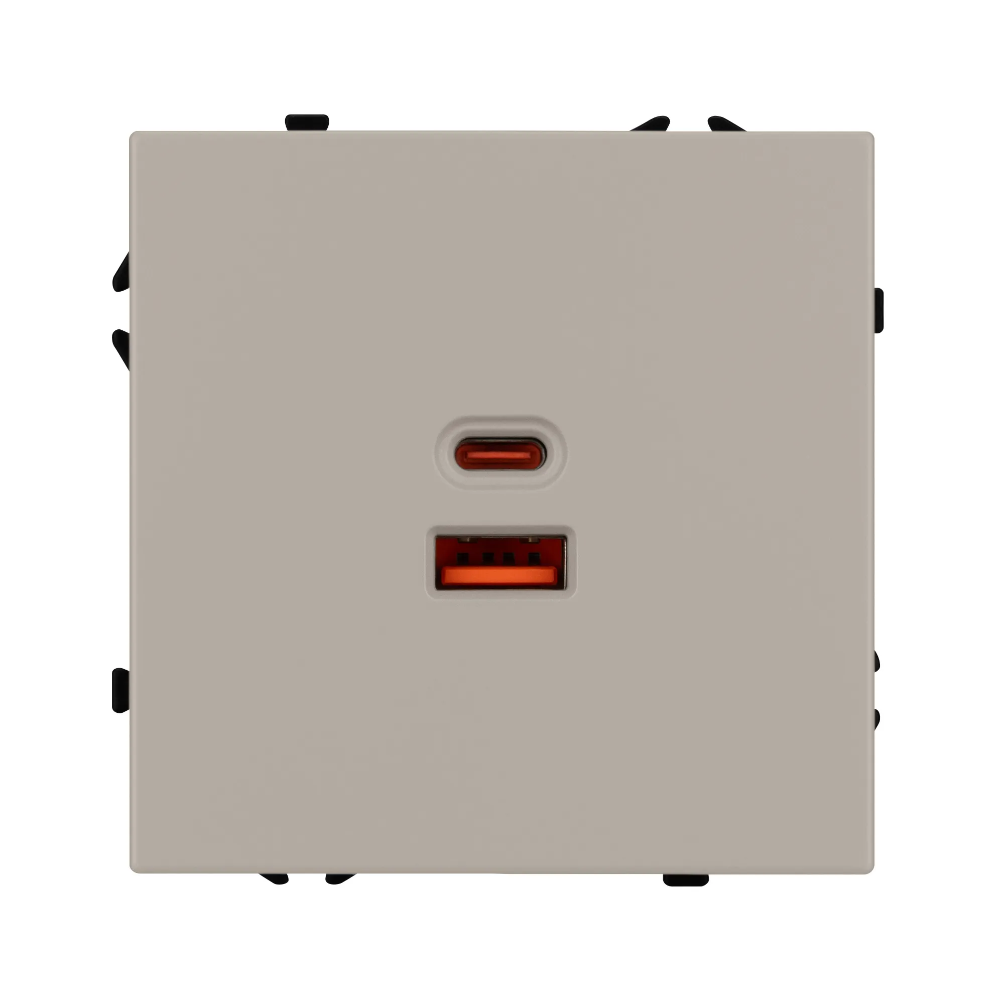 Механизм розетки с быстрой USB зарядкой на 2 порта. Цвет - кашемир, с Soft-Touch поверхностью. Без фронтальной рамки. Уровень пылевлагозащиты IP20. Тип подключаемого разъема - USB Type A + Type C. Устанавливается в стандартный подрозетник круглого сечения диаметром 60мм.