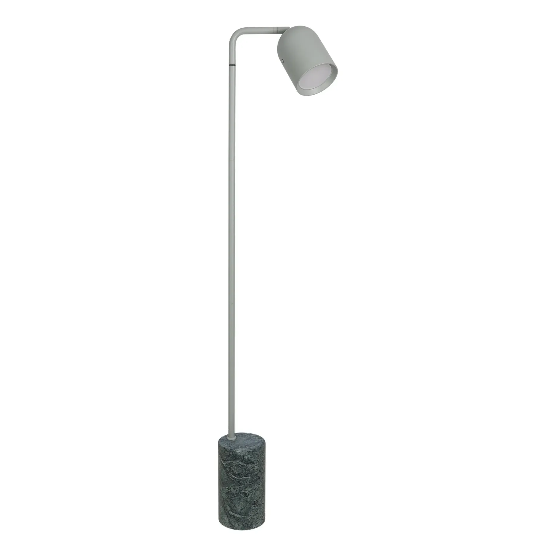Напольный светильник MASON. Мощность 6 Вт, световой поток 530 лм, световая эффективность - 88 лм/Вт, с изменяемой цветовой температурой 2700/3200/4000K, CRI>90, угол 120°, напряжение питания 230 В. Корпус светло-синего цвета из алюминия, напольная база из натурального камня (зеленый мрамор). Сенсорная кнопка на плафоне для настройки яркости и цветовой температуры. Cтепень пылевлагозащиты: IP20. Размеры: диаметр плафона 120 мм, высота плафона 170 мм, диаметр напольной базы 140 мм, общая высота светильника 1430 мм. Цвет и текстура камня могут отличаться.