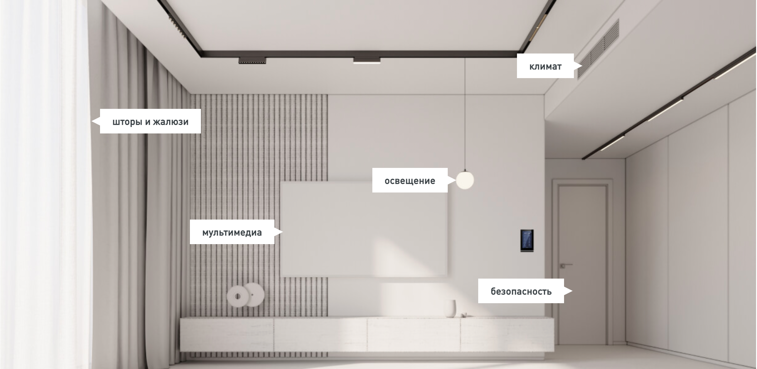 • Управление шторами, жалюзи, аудиосистемой.