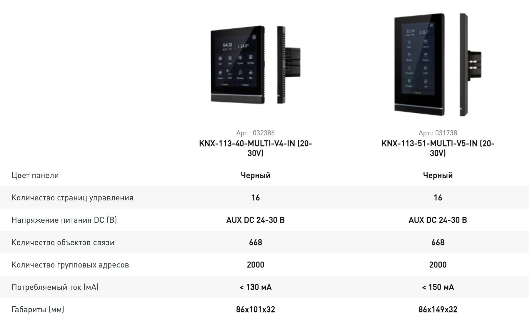 Многофункциональные настенные панели стандарта управления KNX за счет встроенных датчиков температуры, освещенности и приближения позволяют реализовать самый сложный алгоритм работы.