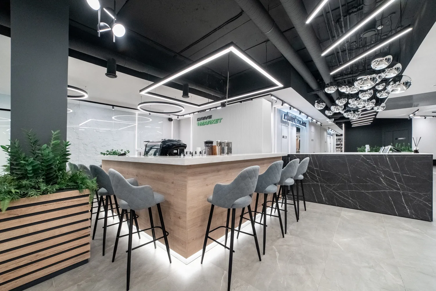 Фитнес-центр премиум-класса Drive Black общей площадью 2346м2 расположился на цокольном этаже ЖК Метрополис в г. Красноярск и включает в себя бассейн, термальные SPA-зоны, тренажерный зал, залы групповых программ, детский клуб, зона единоборства , зона кроссфита. Индивидуально для каждой зоны было подобрано освещение исходя из всех нюансов проводимых в них активностей.